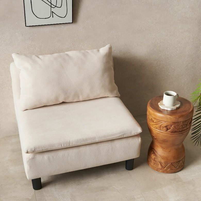 重量約12kgで安定感があり、サイドテーブルとしてはもちろん、ちょっと腰掛けたいときのスツールとして、多彩なシーンで空間に温もりと個性を添えます。