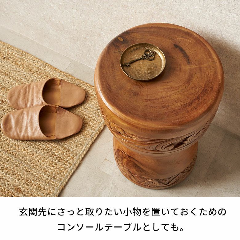 玄関やリビングでスツールとして、出かける前の小物置きにも便利