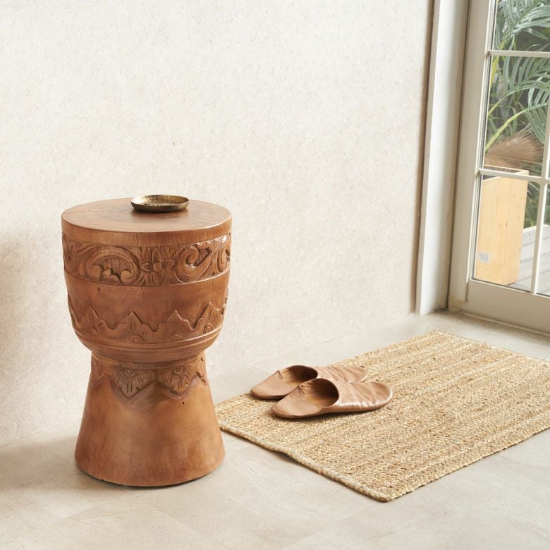 自然の木目や丸みのあるフォルムが、アジアンテイストの空間に温かみをプラス