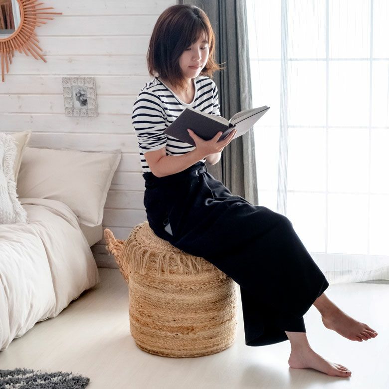 座面を囲うアクセントのタッセルが、涼し気なデザインです。