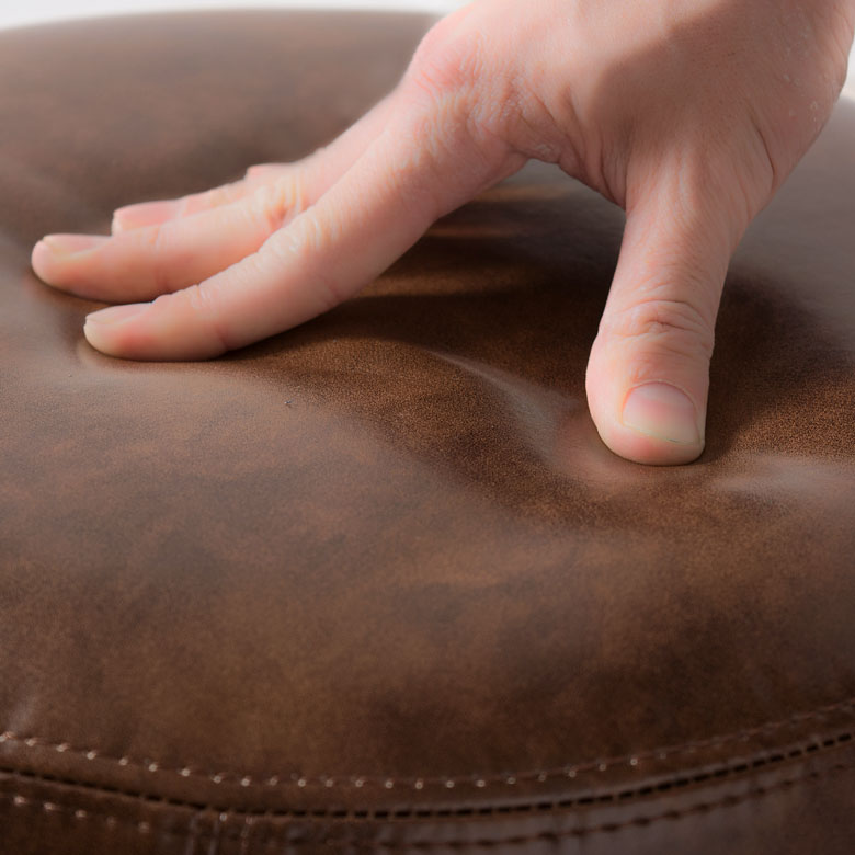 座面部分には、本革に近い風合いのボンデッドレザーを使用。