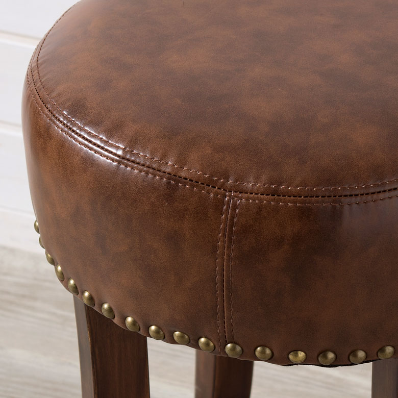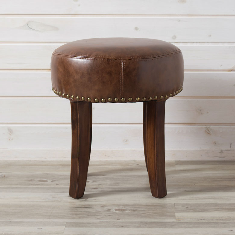 丸スツール 丸いす ラウンドスツール 椅子 いす イス チェア チェアー 丸型 スタッズ 鋲付き オットマン 足置き 1人掛け 天然木 革 皮 厚座 男前 ブルックリン アメリカン オールド スツール 円形 ラウンド 木製 猫脚 レザー座面 高さ40cm ブラウン 茶 丸椅子 イス チェア リサイクルレザー アンティーク調 レトロ おしゃれ ヴィンテージ クラシック 在宅勤務 [91335]