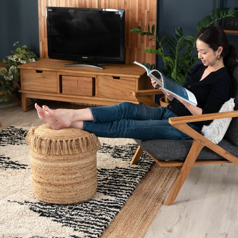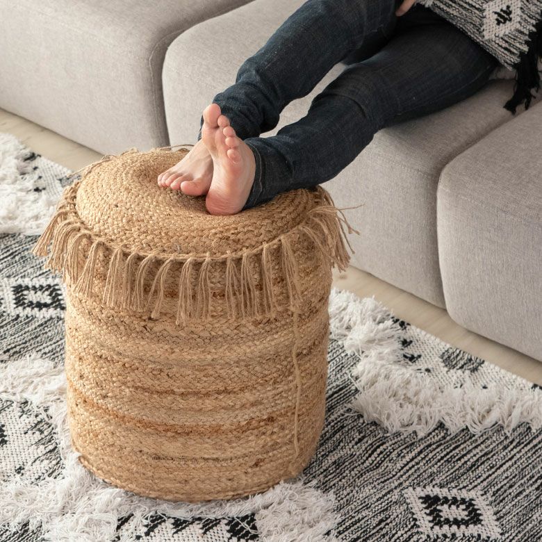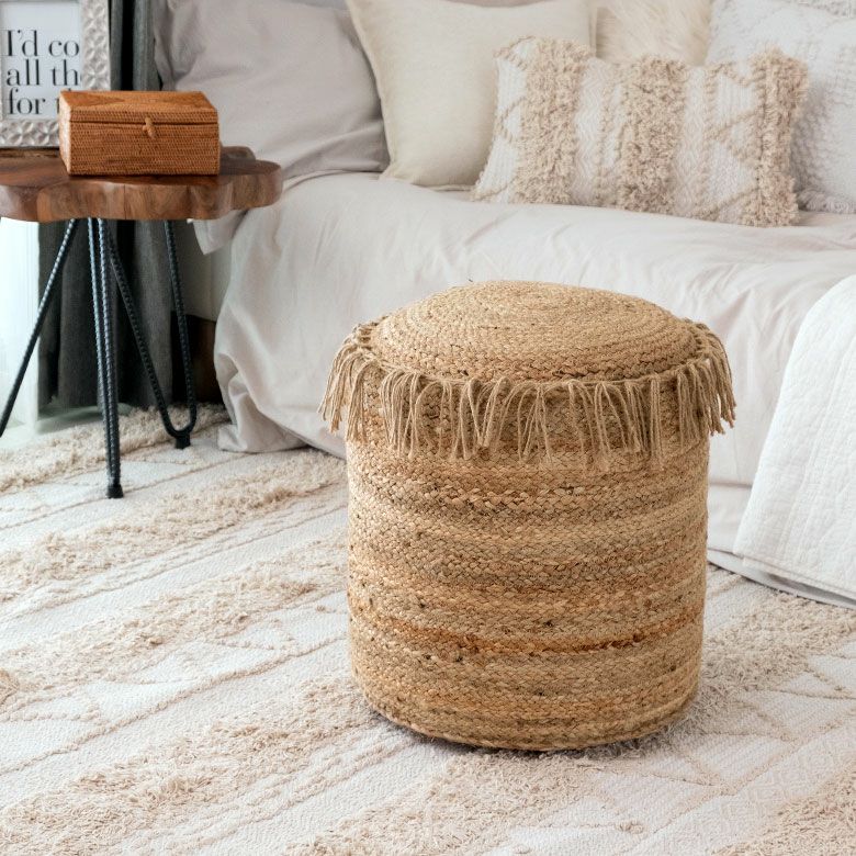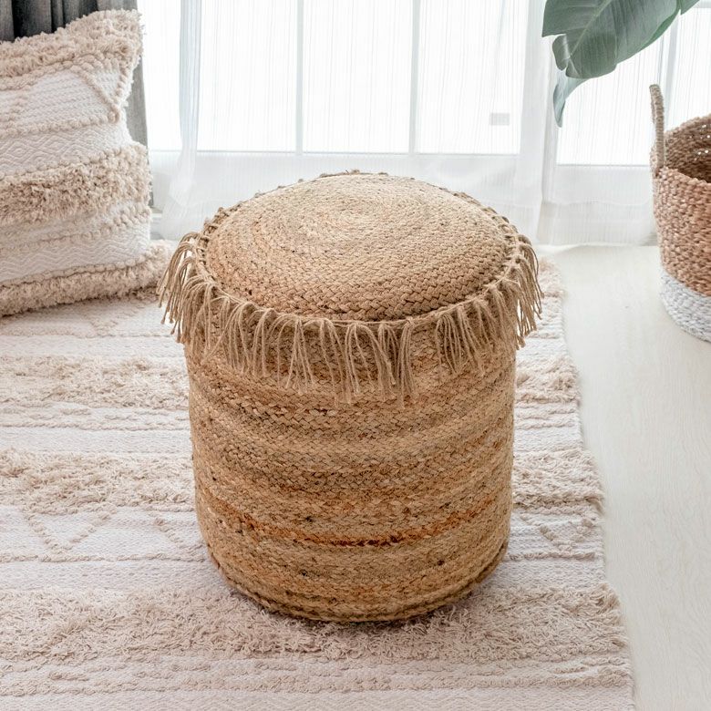 スツール pouf ロースタイル チェア 椅子 麻 ジュート クッション スツール プフ ジュート フリンジ ジュート素材 約 W 40 × D 40 × H 45 オットマン プーフ [34434]【 クッションスツール プフ型クッション 丸形 ラウンド ラウンドクッション おしゃれ お洒落 天然素材 ナチュラル アジアン アジアン雑貨 コースタル ベランピング 】