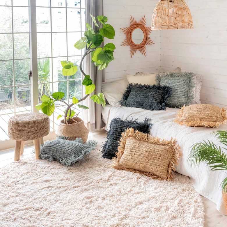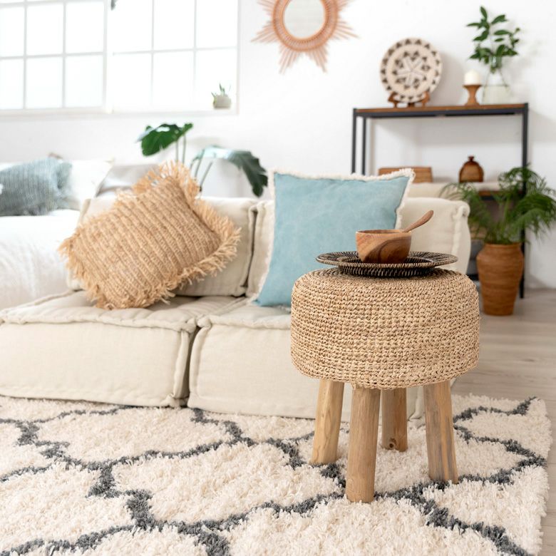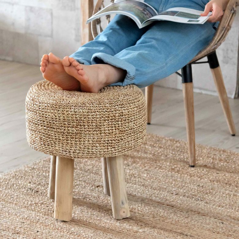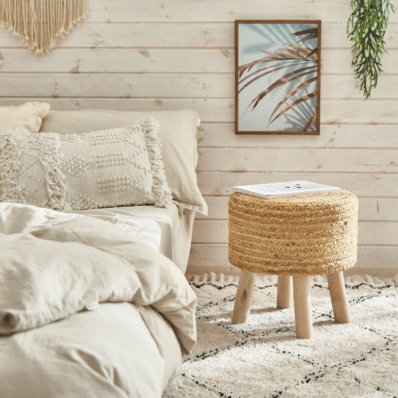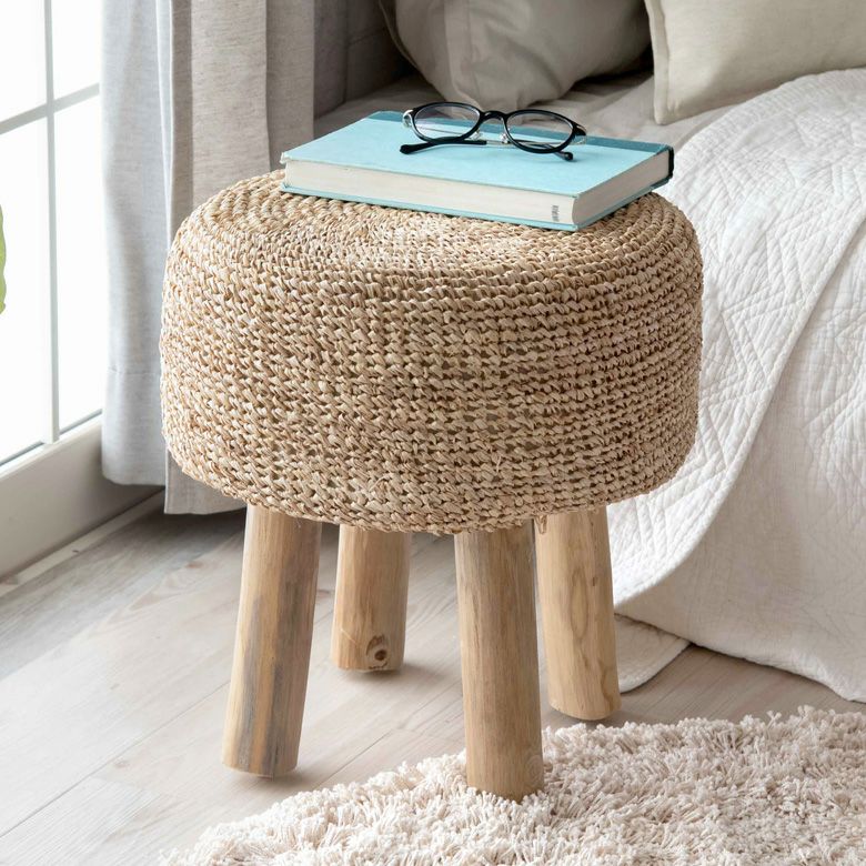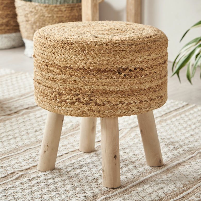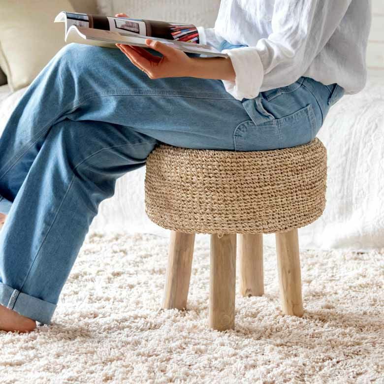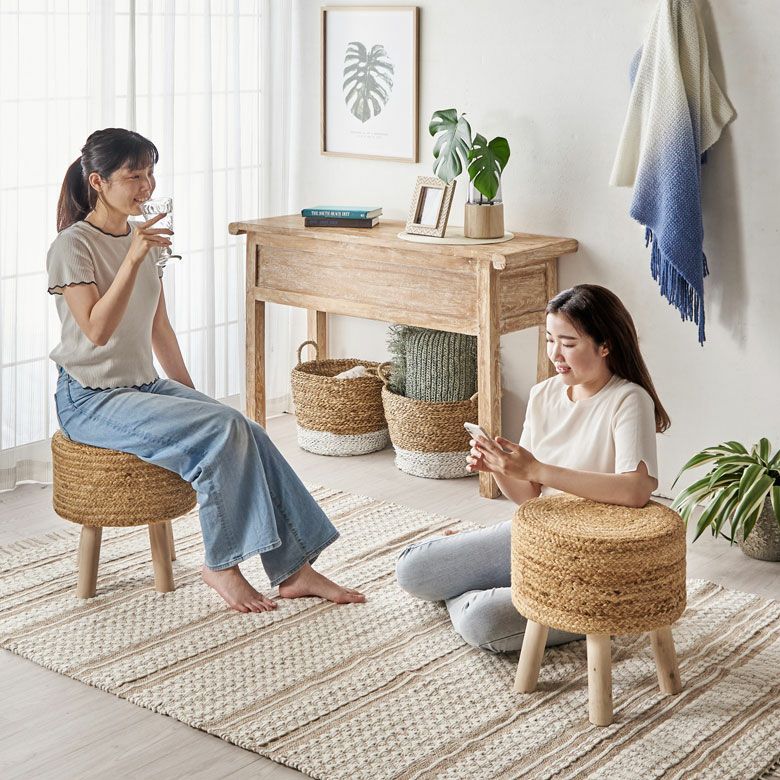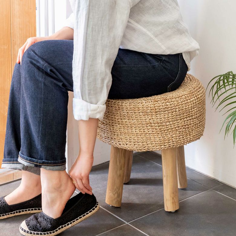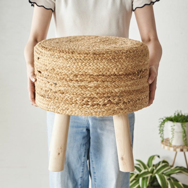 一人掛け 1人掛け 小型 置台 室内 屋内 玄関 クッション スツール ラウンド 円形 ジュート 木製脚 座面高 約40cm 約 W35 × D35 × H40cm 椅子 いす イス チェア 丸椅子 腰掛け オットマン 足置き 花台 フラワースタンド プランタースタンド おしゃれ 北欧 韓国 インテリア モダン ナチュラル シンプル アジアン 家具 BOHO [34571]