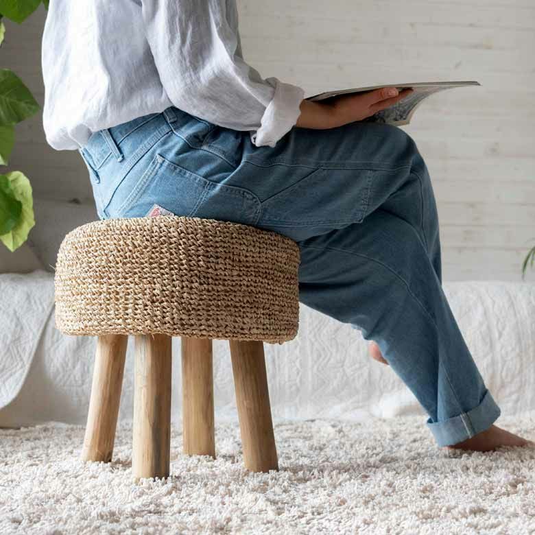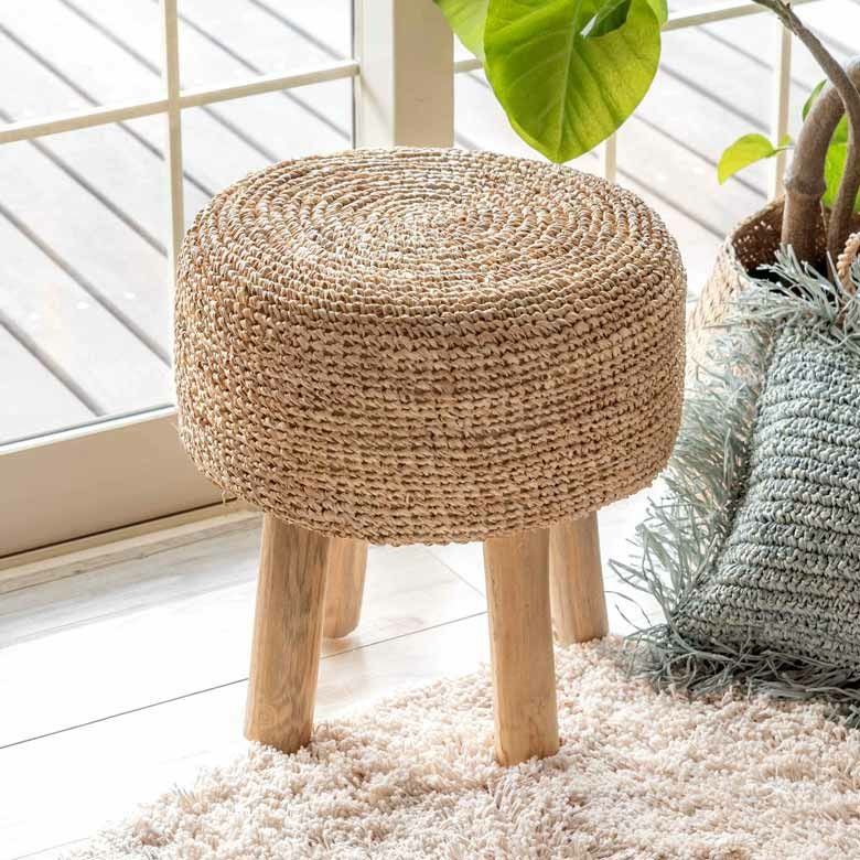 丸椅子 北欧 ソファ チェア いす リゾート ビーチインテリア スツール 椅子 イス 天然素材 ラフィア W 39cm D 39cm H 40cm [13918]【 サイドテーブル テーブル おしゃれ 椰子 素材 麦わら かわいい インテリア オットマン ナチュラル リゾートインテリア ナチュラル ウッド ディスプレイ アジアン 雑貨 アジアン雑貨 バリ島 】
