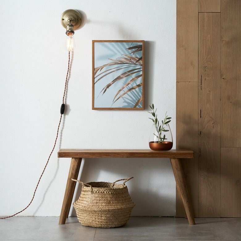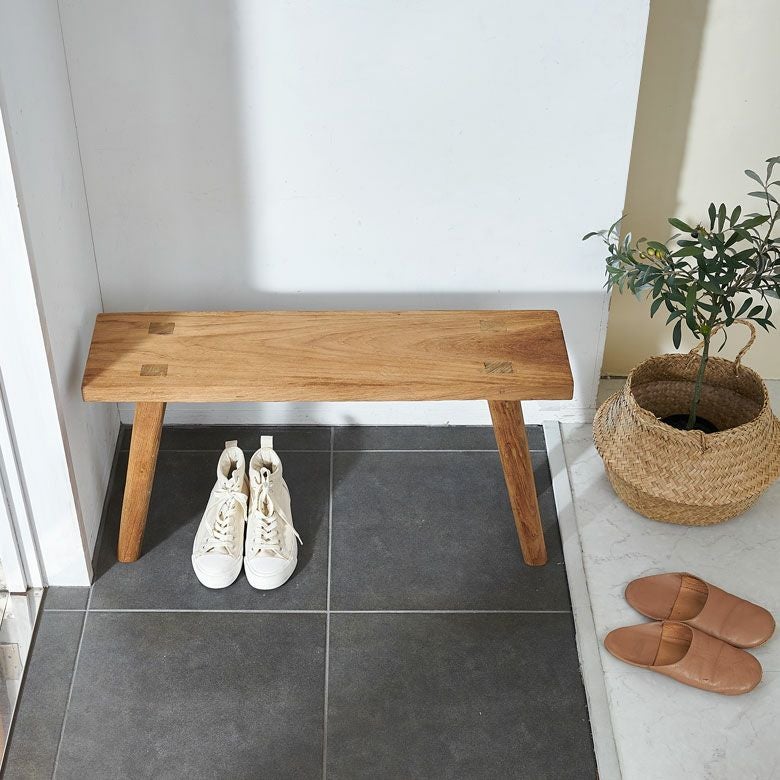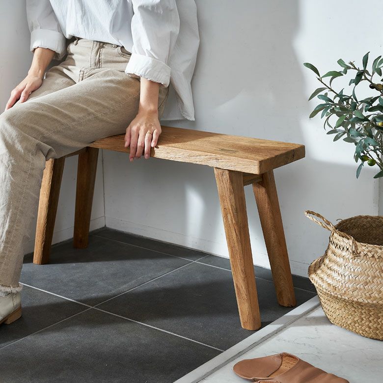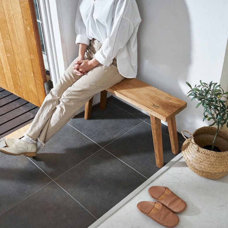 玄関の腰掛けベンチとしても使いやすい、小ぶりなサイズ感。