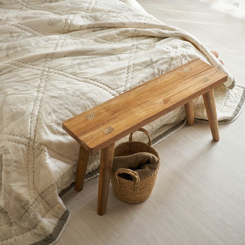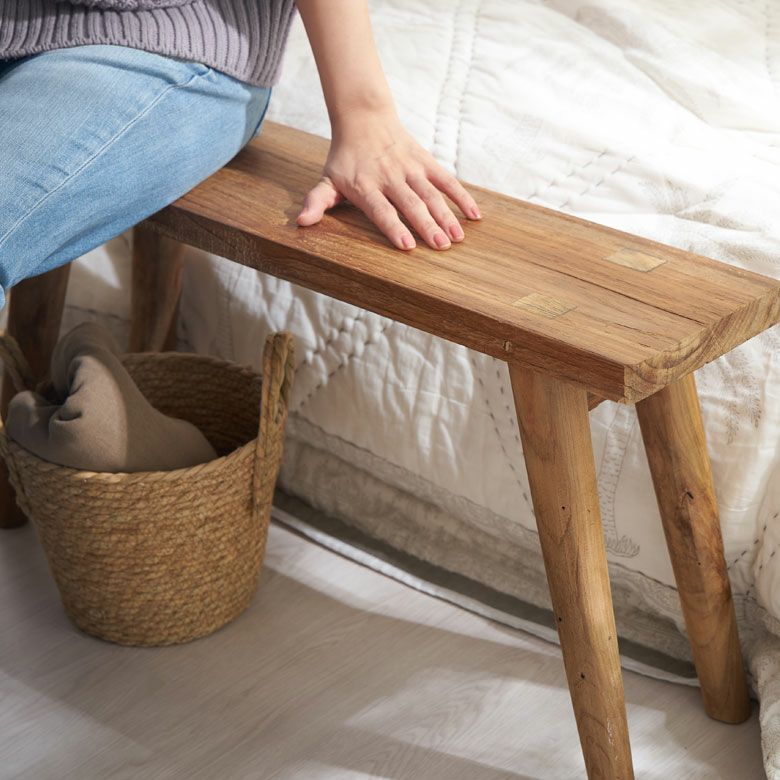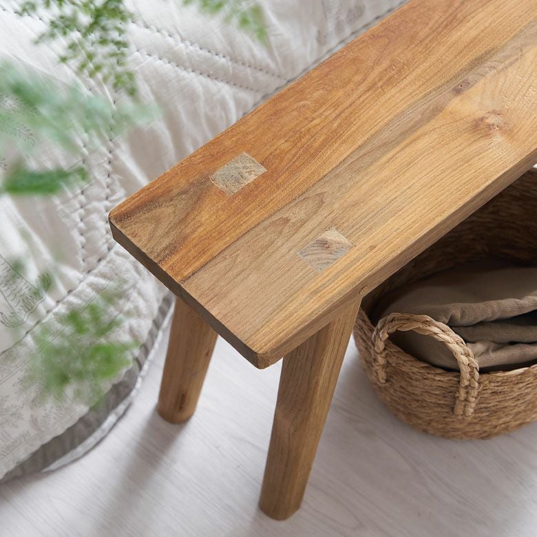 小ぶりなサイズ感ながら、丈夫なチーク材なのでベンチとしても活躍。