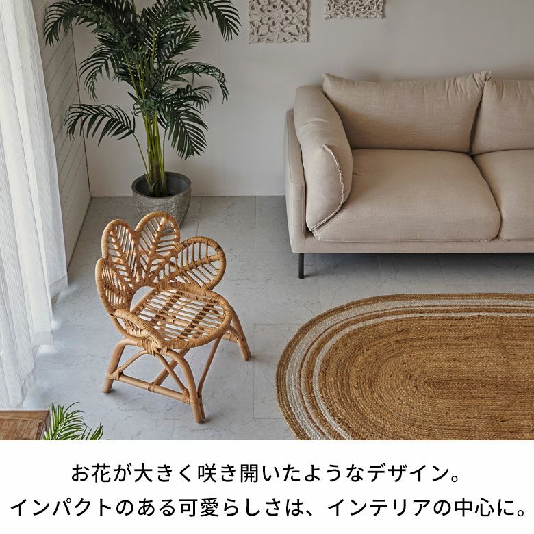 天然素材ならではの風合いを活かした、フラワーデザインのチェア。