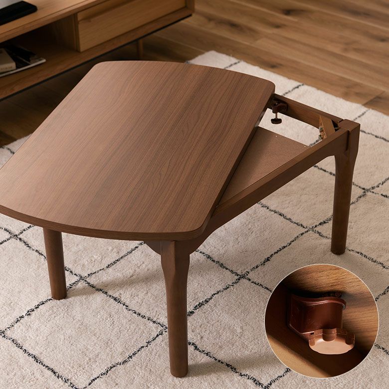 シーンに合わせて高さが変えられる、便利なこたつテーブル。
