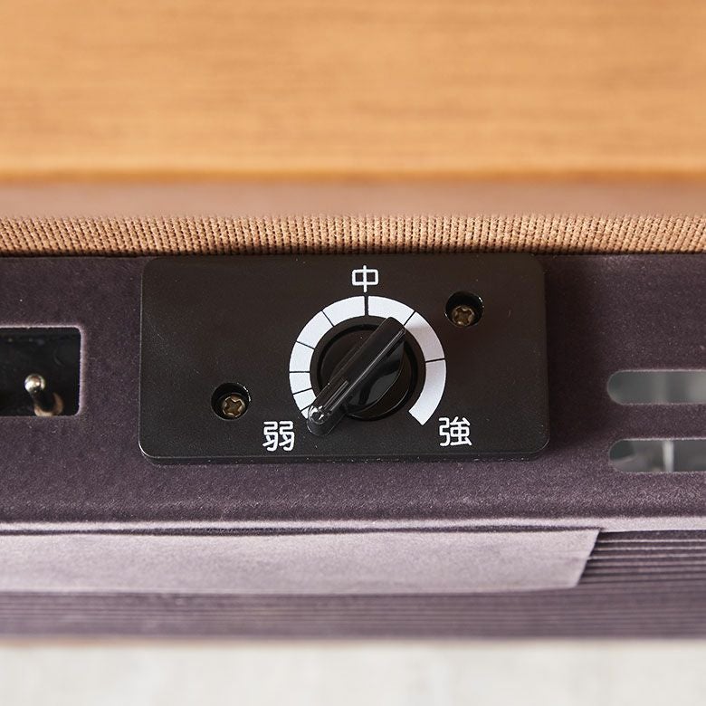 温度は調節つまみで弱から強まで調節可能。