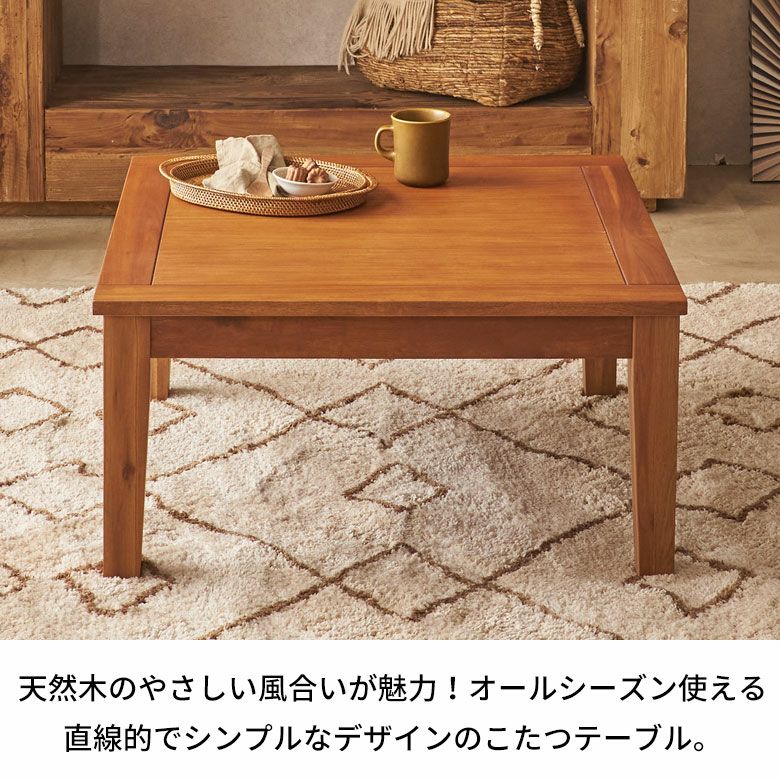 天然木アカシアのぬくもり、やさしい風合いを感じられる、直線的でシンプルなデザインの正方形こたつテーブル こたつテーブル 正方形 リビングテーブル こたつ 天然木 家具調 コタツ テーブル 小さめ 省スペース コンパクト W75×D75×H38cm こたつ 正方形 75×75 ミニ こたつ 小さい おしゃれ コタツテーブル オールシーズン 炬燵 電気こたつ アジアン家具 リゾート家具 [91629]
