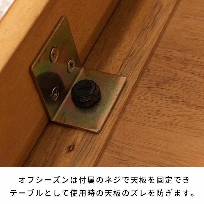 ・オフシーズンは付属のネジで天板を固定でき、テーブルとして使用するときの天板のズレを防止