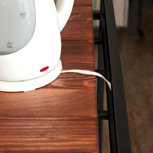 コーヒーブラウンの木部と、ブラックアイアンの脚がインダストリアルな