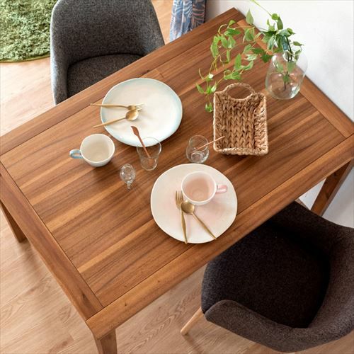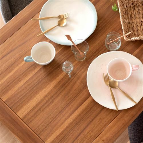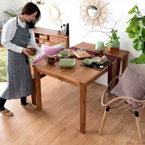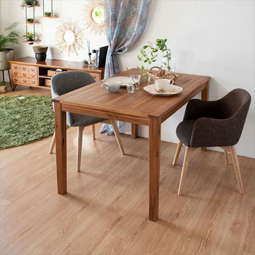 シンプルで、アカシア材独特の素朴で温かみがあるダイニングテーブル。