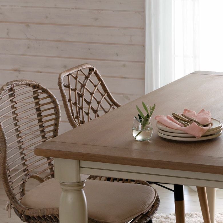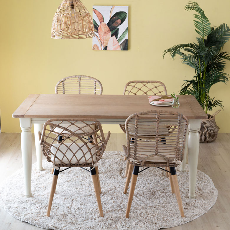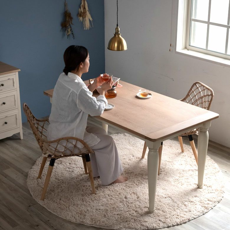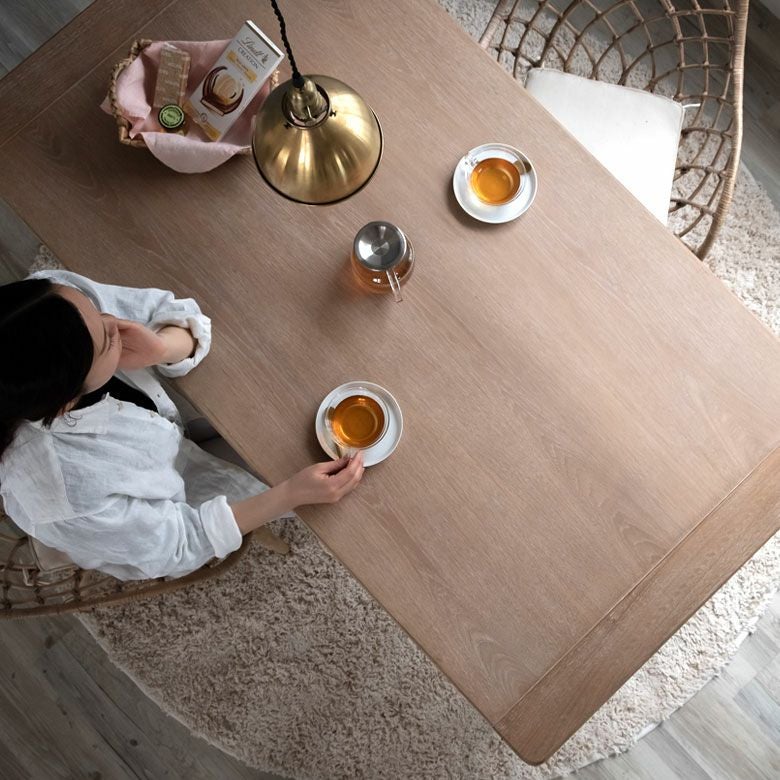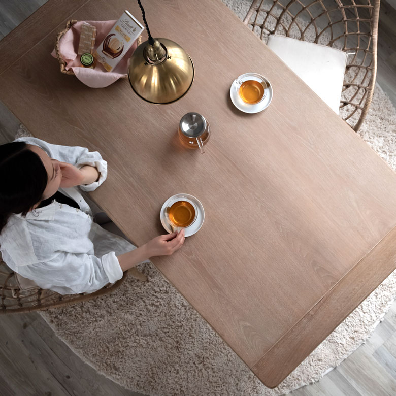天然木仕上げの天板にクラシカルなスタイルの脚。
