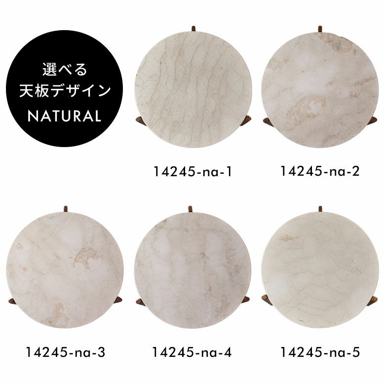 天板には、独特の模様が美しい天然大理石を使用。自然が生み出す唯一無二の表情が、リビングに上質なリゾートの雰囲気をもたらします。脚部にはスワールウッドを採用し、スタイリッシュな3本脚デザインに仕上げました。カラーはホワイト・ナチュラル・ブラックの3色展開。それぞれに異なるマーブル模様を持つ5種類の天板をご用意しており、全15通りの組み合わせから、お部屋の雰囲気やお好みに合わせてお選びいただけます。異素材の組み合わせが生むコントラストが、空間をより洗練された印象に仕上げます。