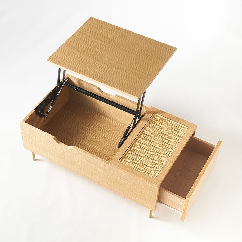 天板をあげてPC作業や書類まとめなどのワークデスクとして