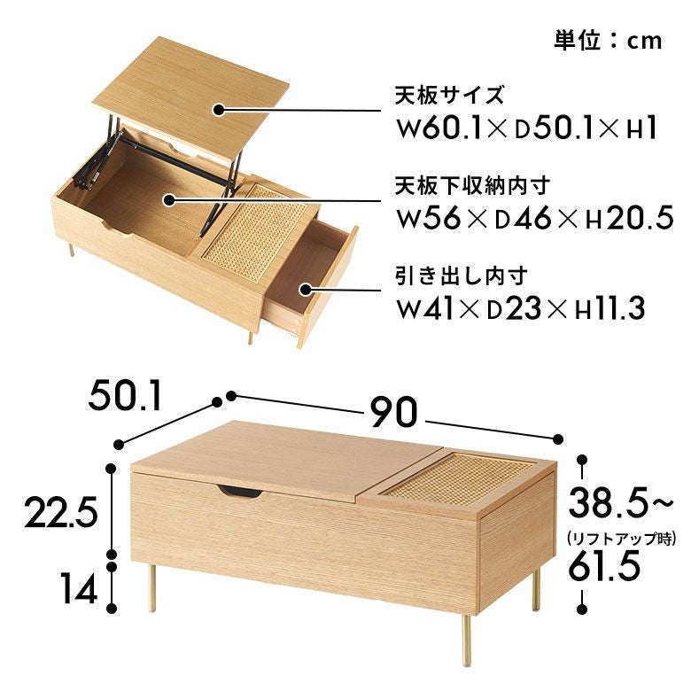 ・高さは約38.5cmと約61.5cmの使うシーンで高さ調整ができる天板昇降式