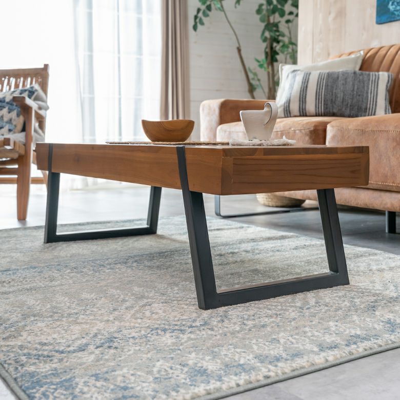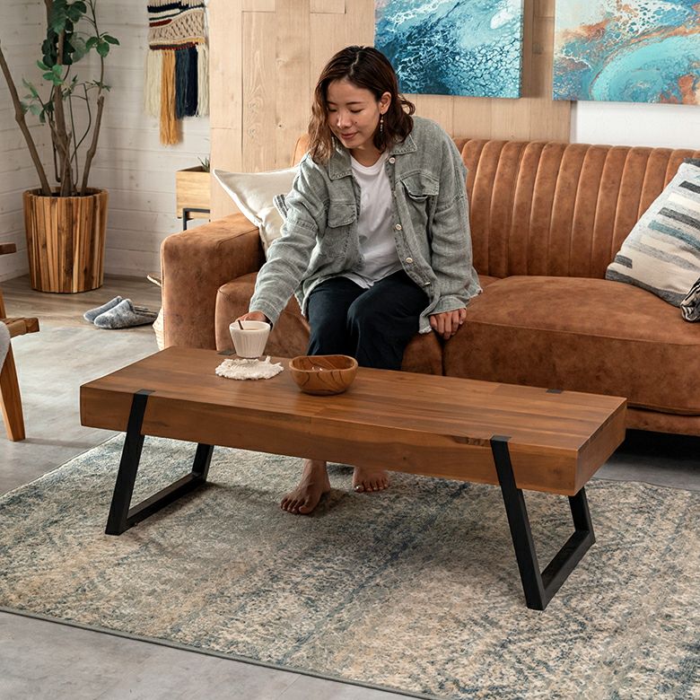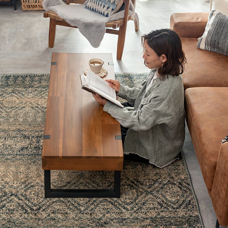 重厚な雰囲気と、自然な光沢の木肌が目を引くセンターテーブル。