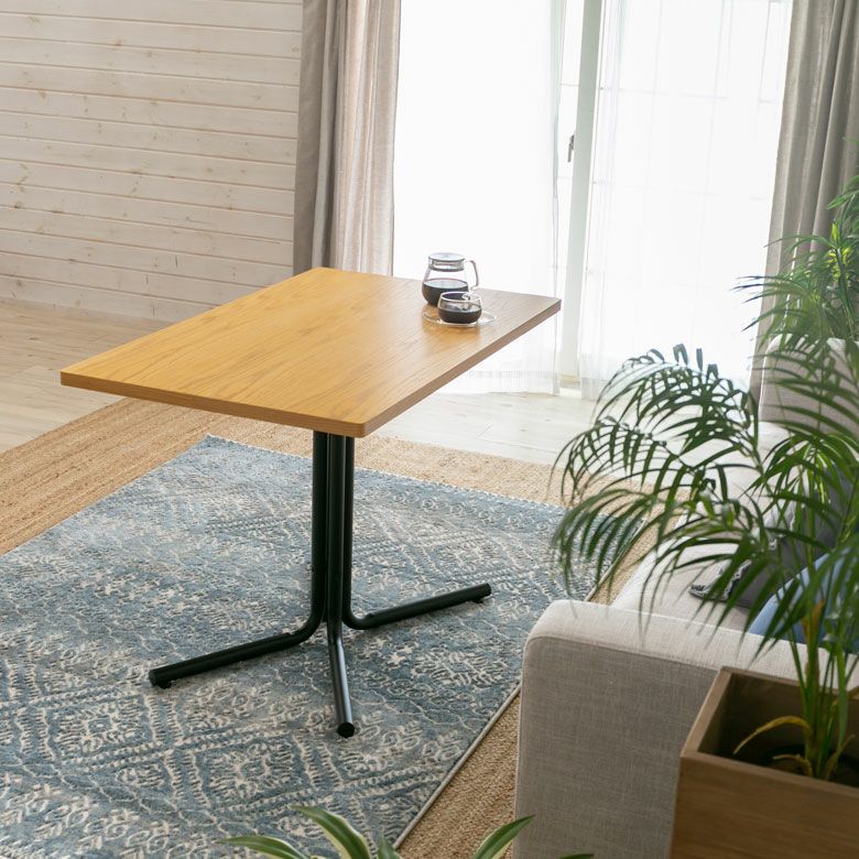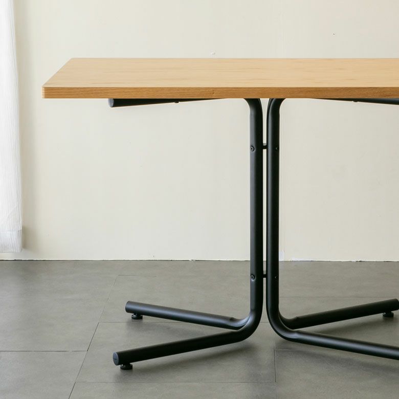 ブラックスチールの脚にナチュラルな天板が映える、カフェ風スクエアテーブル。