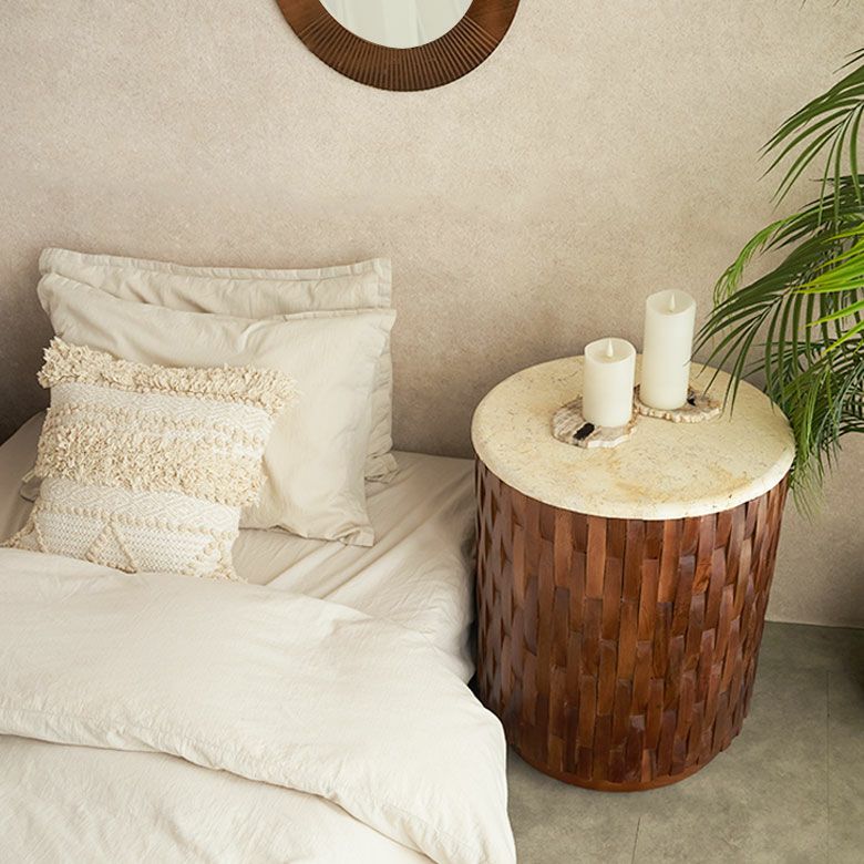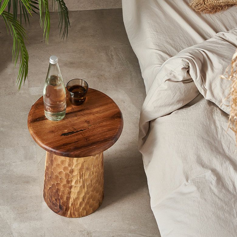 ベッドやソファのデザインやカラーに合わせて選びたいサイドテーブル。