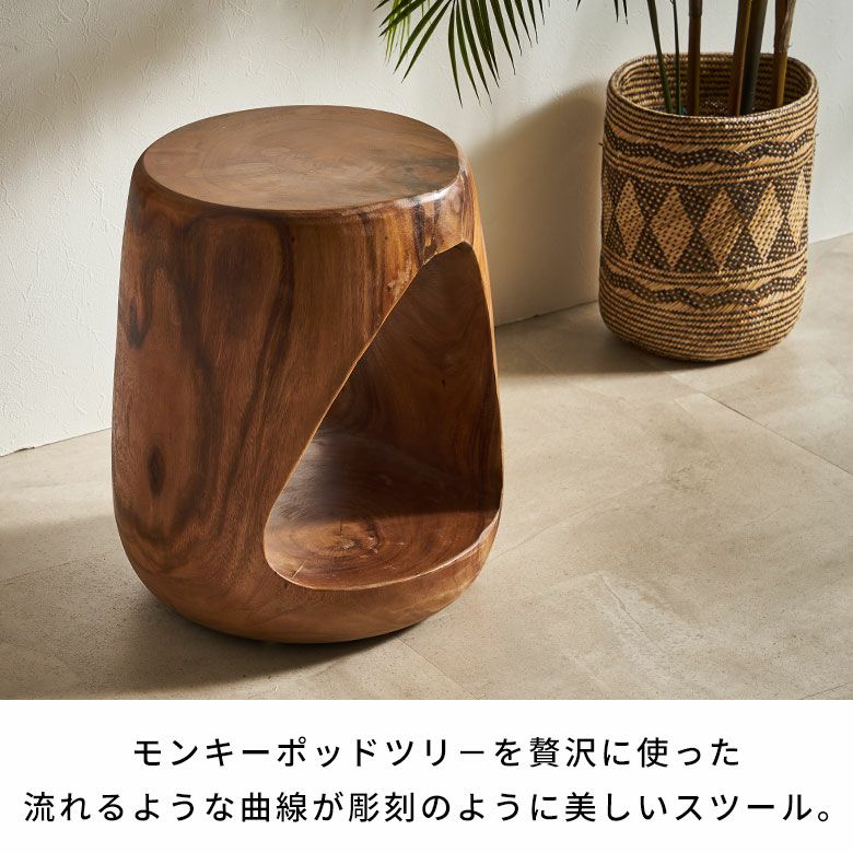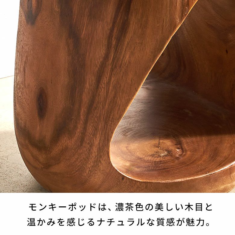 ・モンキーポッドの美しい木目をお楽しみいただける木彫りのスツール