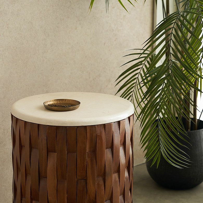 異なる天然素材のコントラストで、洗練と温もりを同時に楽しめるサイドテーブルです。