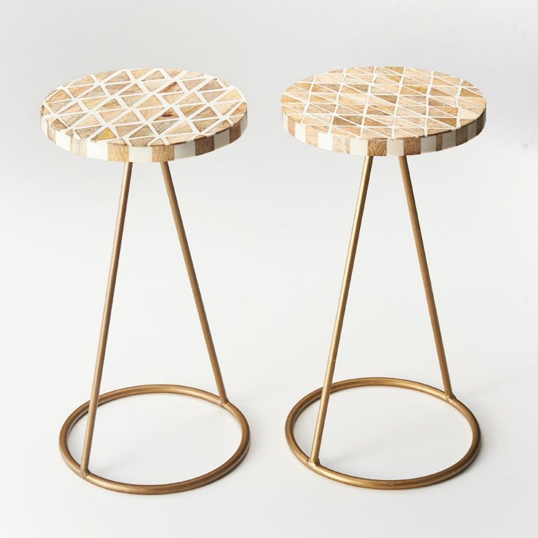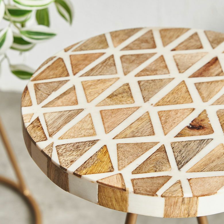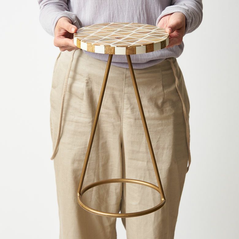 インド製ならではの、どことなく素朴でかわいい寄木調のプランタースタンド。