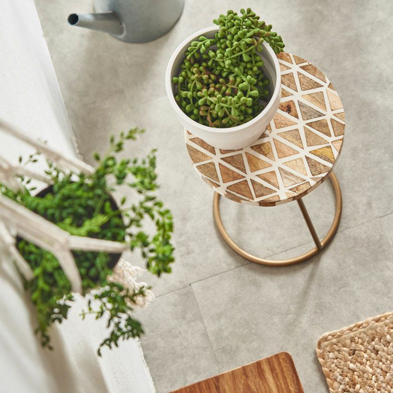鉢植えをポンと乗せるだけで、空間を格上げしてくれるアイテムです。