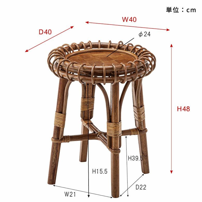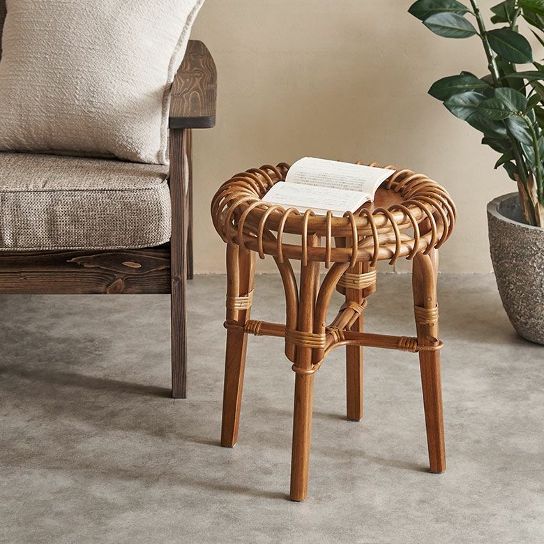軽くて丈夫な天然素材ラタンでできたサイドテーブル。