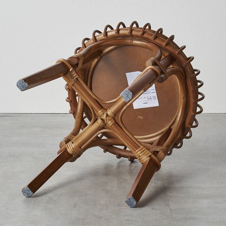 ラタンが花のように放射状に広がる天板のデザインが魅力的。