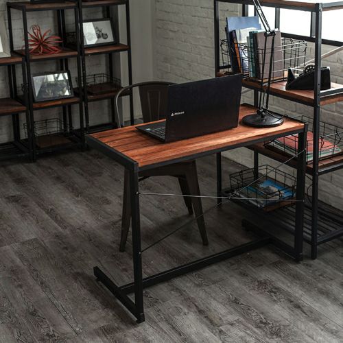 コーヒーブラウンの木部と、ブラックアイアンの脚がインダストリアルな