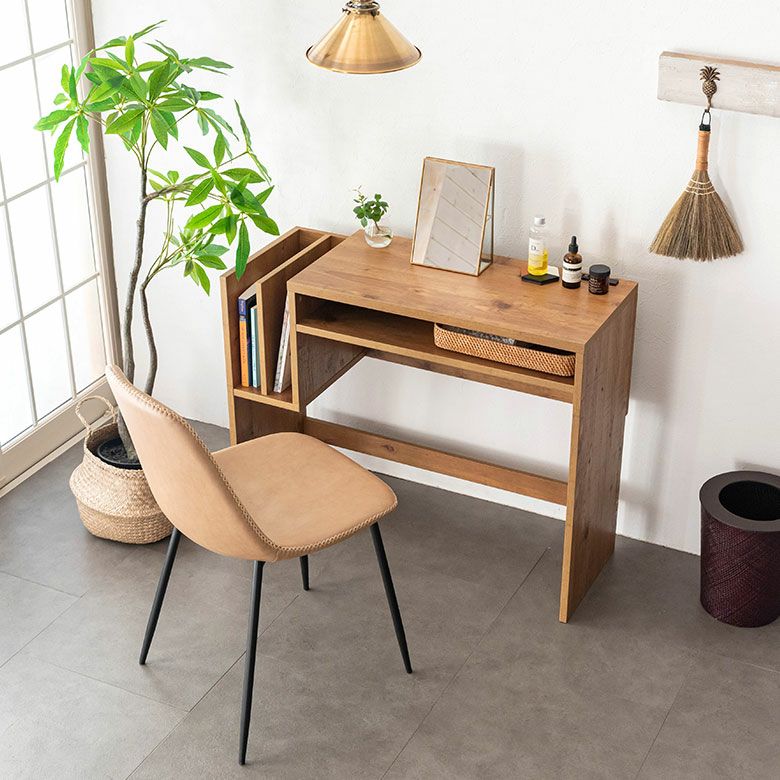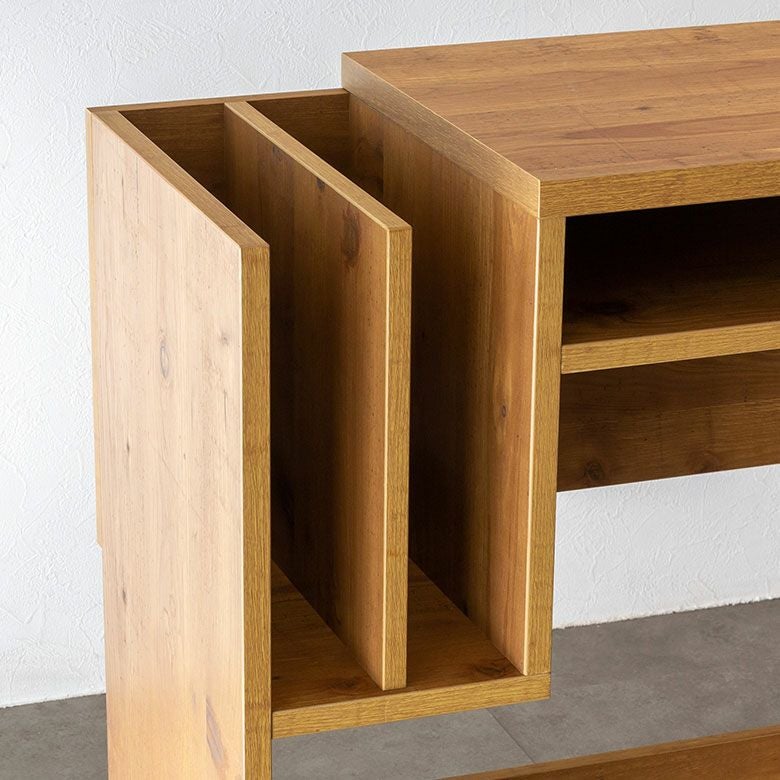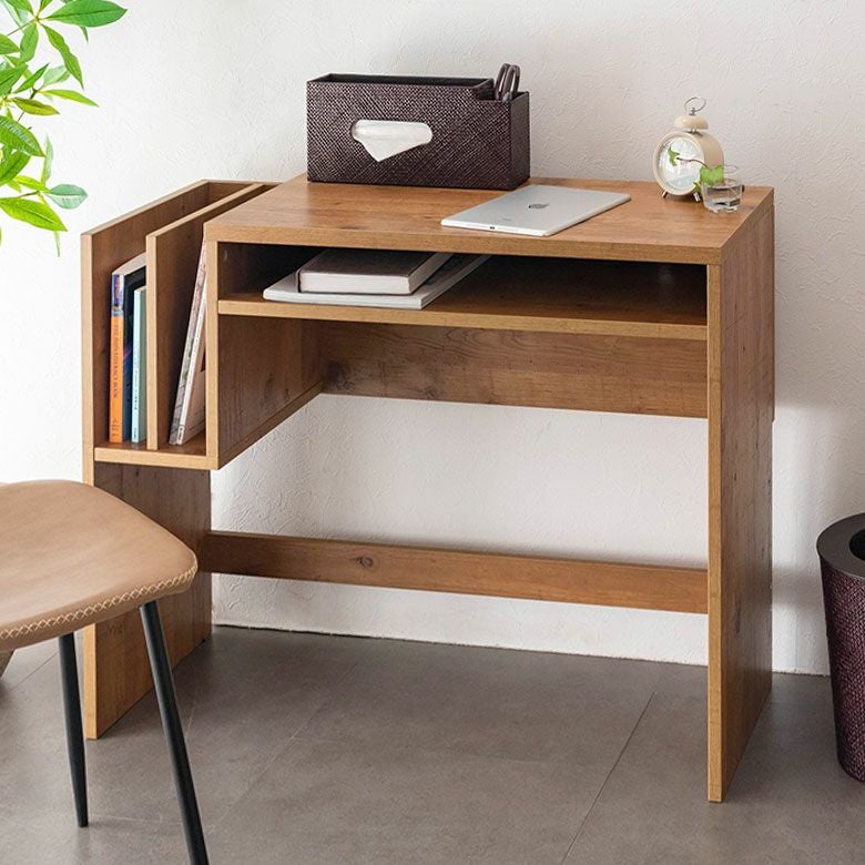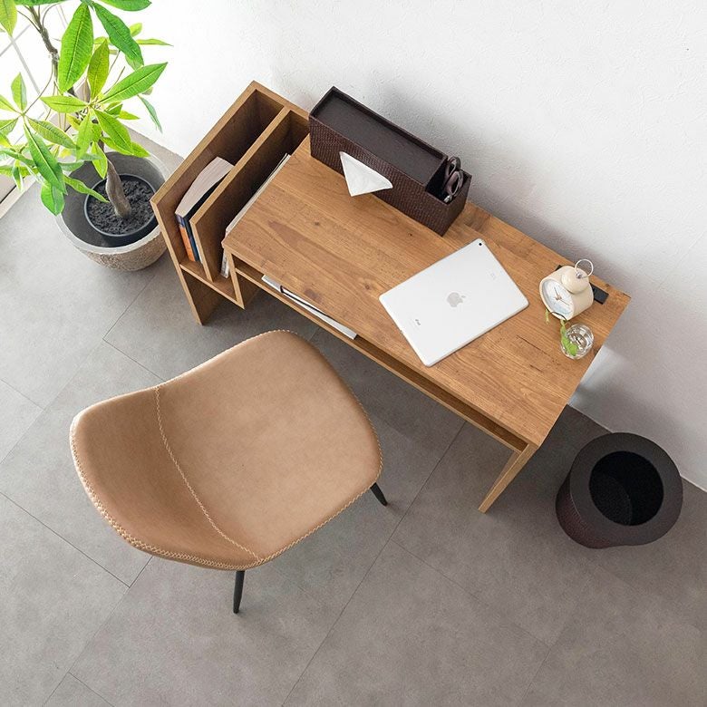 本をサイドに収納することで机上をフラットに使えて見た目もすっきり。