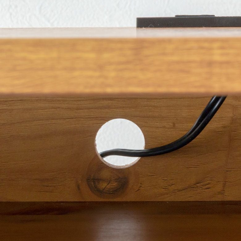 デスクの背面にはコードを通す穴が開いています。