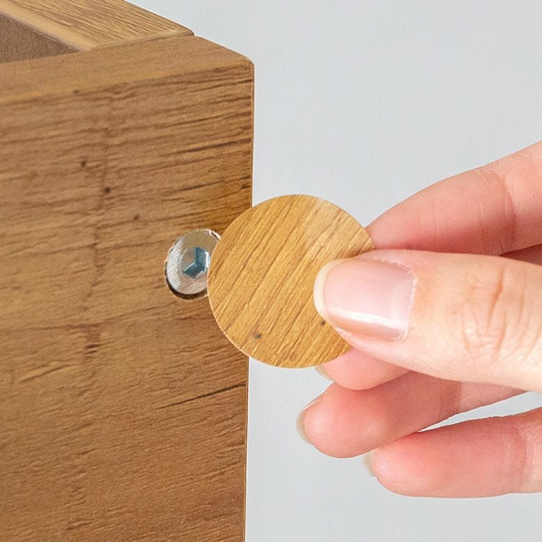 木目調のシールが付属しているので、ネジ隠しにお使いください。