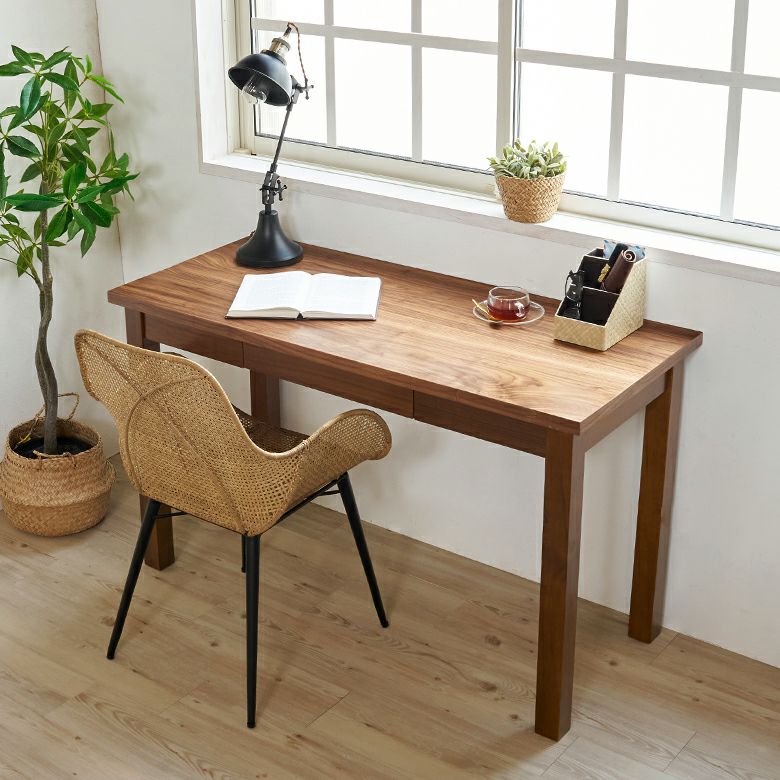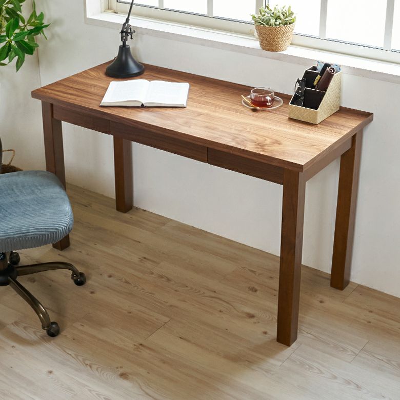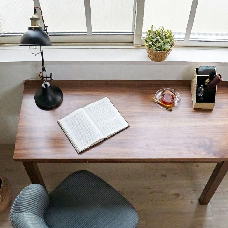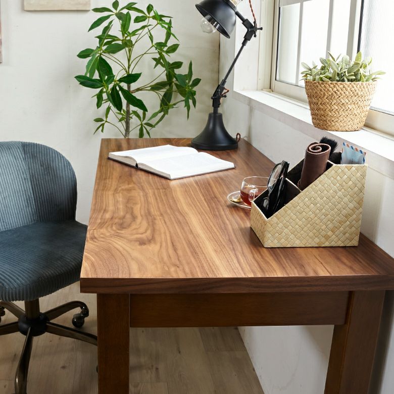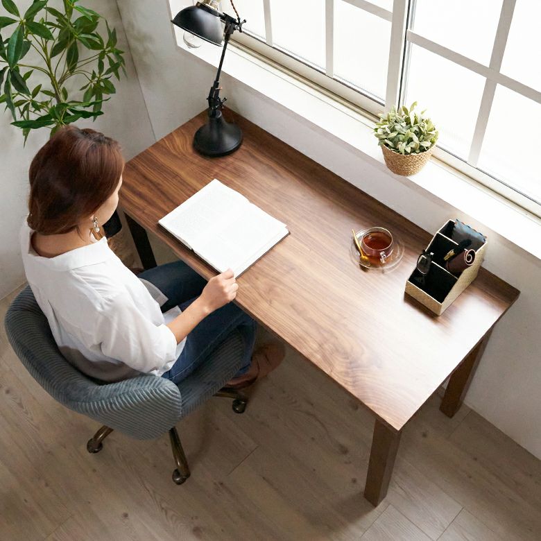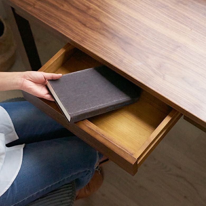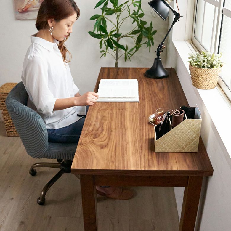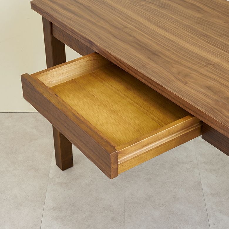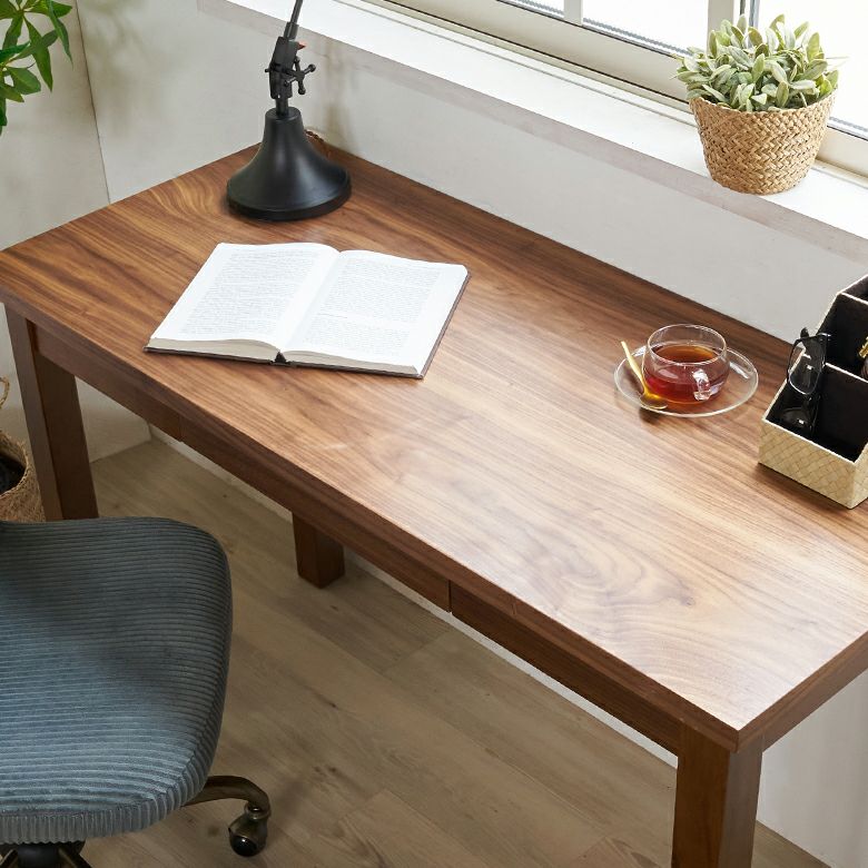 深みのあるブラウンカラーが美しい、天然木ウォールナットを使って作られたデスク。