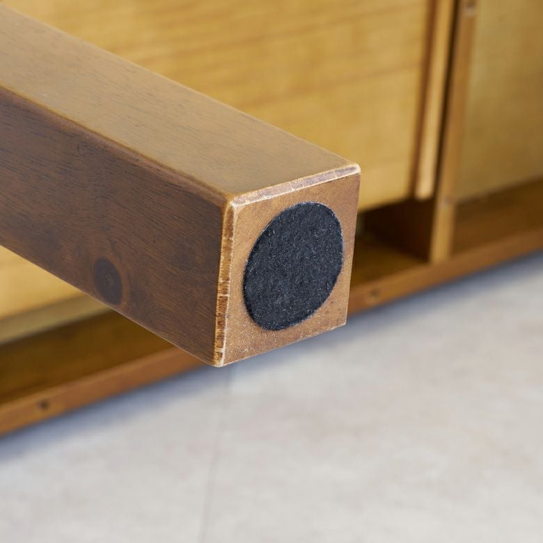 ![]() 脚裏には、床キズ防止のフェルト付き。 |