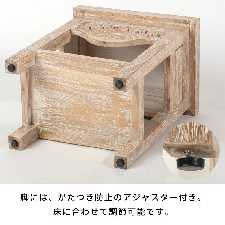 南米ウォルナットとも呼ばれるモンキーポッド(スワールウッド)を贅沢に使用した、アンティークレリーフのようなカーヴィングデザインが魅力のウッドスツール モンキーポッドツリーの丸太から削り出したサイドテーブルとしても使える木彫りのスツール(フラワーグリッド)[14240]
