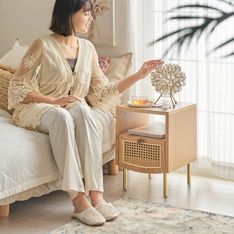 組立品 32cm幅 シェルフ 収納棚 棚 ミニテーブル ミニ 小さい リビング 寝室 ベッドルーム マガジンラック 本棚 収納ラック 収納シェルフ リモコン置き コンパクト ギフト プレゼント サイドテーブル 2段 引き出し 収納 ナイトテーブル ソファーテーブル テーブル ラタン 籐 ウッド 木製 約 W 32cm D 33cm H 45cm ナチュラル サイド ナイト ソファ ソファー スリム チェスト おしゃれ 北欧 リゾート 家具 インテリア Tilem ティレム アジアン [61736]