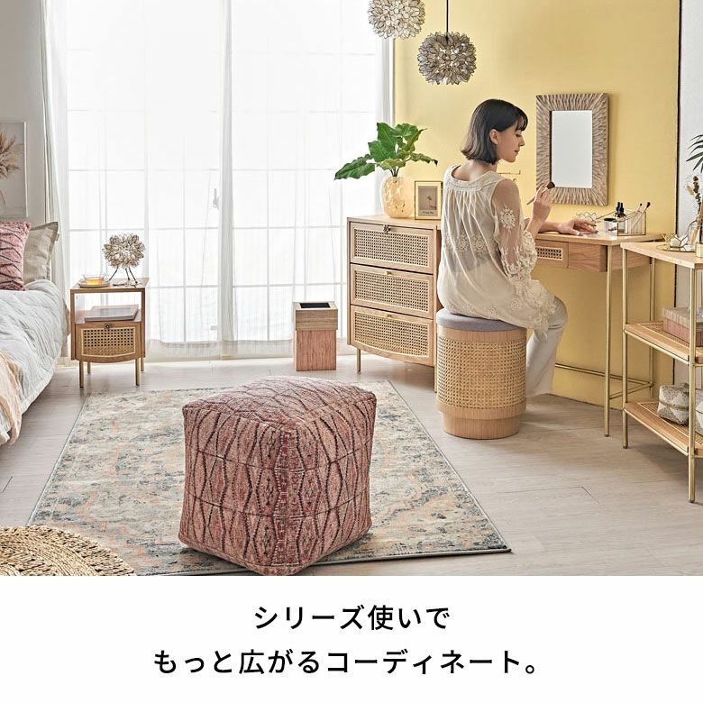 天然木 収納付き コンソールデスク 天然素材 メイク台 木製ドレッサー 一人暮らし 小物収納 コスメ収納 寝室 リビング リモートワーク pcデスク バリ島 ホテル 店舗 サロン ヴィラ ウォールナットの木目とラタンメッシュのコンビネーションがリゾート感を醸し出すコンパクトなアジアンドレッサー(ティレムエレガンシリーズ) [67187]