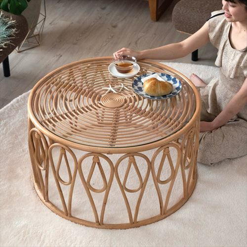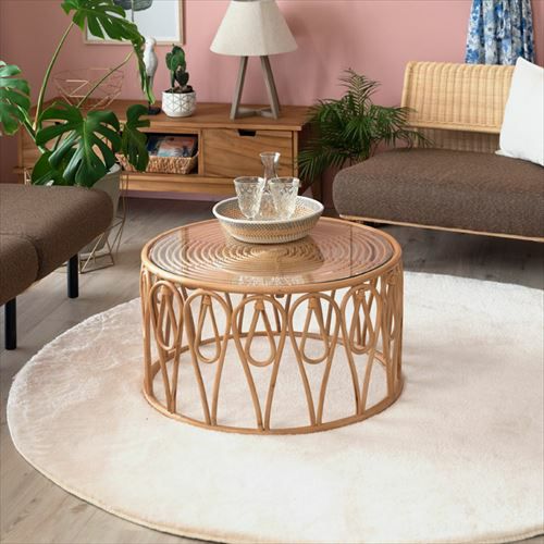 ラウンドテーブル ガラステーブル ガラス天板 ガラストップ 手彫り 彫刻 什器 オブジェ リビング ダイニング 店舗 カフェ ホテル レストラン モダン カフェテーブル 食卓 食卓テーブル テーブル ローテーブル チーク ウッド 天然木 木製 ガラス 約 W 90cm D 90cm H 36cm ブラウン ナチュラル ラウンド 円形 直径 90cm センターテーブル リビングテーブル ダイニングテーブル 高級感 完成品 おしゃれ 北欧 リゾート 家具 インテリア アジアン [91621]