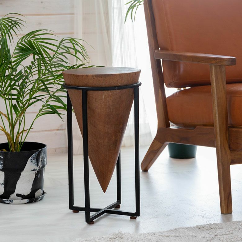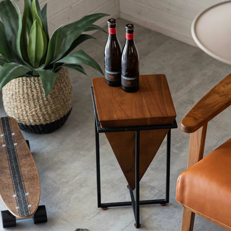 テーブル ソファーテーブル インテリア リビング 玄関 家具 サイドテーブル コーヒーテーブル アイアン 木 W 25cm H 45.5cm ブラウン ブラック [91481]【 テーブル デザイン家具 ウッド 天然木 アイアンフレーム スチール おしゃれ かっこいい モダン アメリカン ミッドセンチュリー 丸 四角 幾何学 ジオメトリック スタイリッシュ】