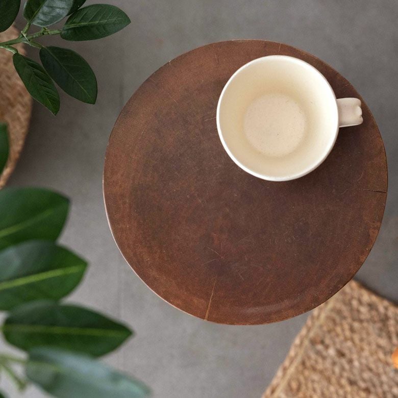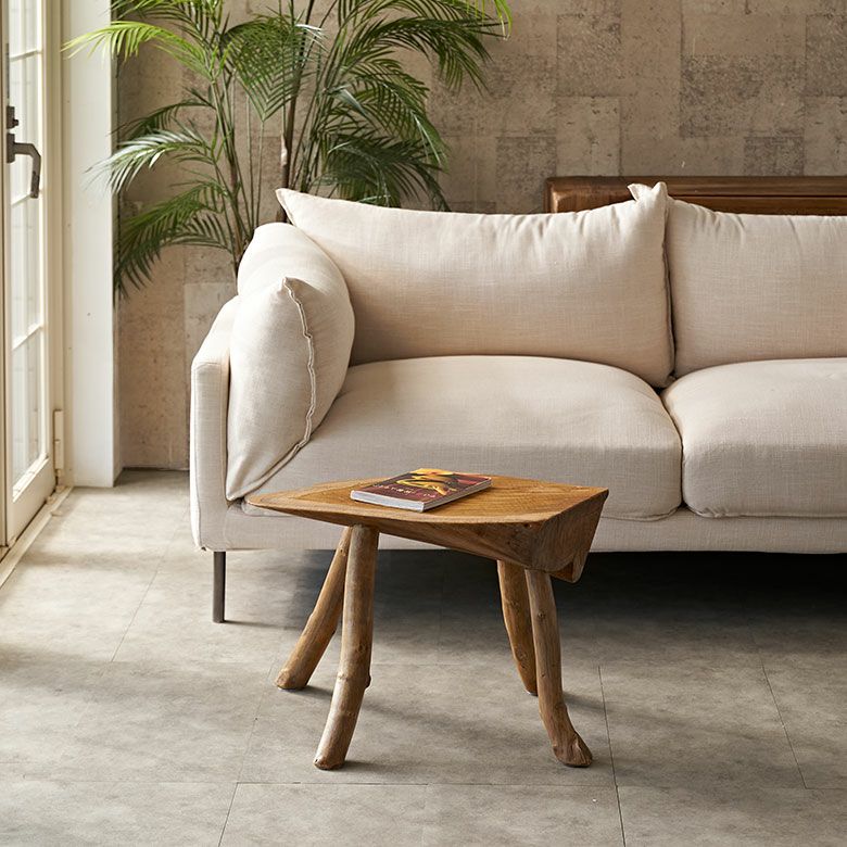 ミニテーブル コーヒーテーブル コンパクト 省スペース スタンド プランタースタンド プランター台 ソファ テーブル ナイト リビング 寝室 ベッドルーム ベッドサイド ギフト プレゼント 天然木チークウッド無垢材の切り株をそのまま生かして作られたサイドテーブル [14024]