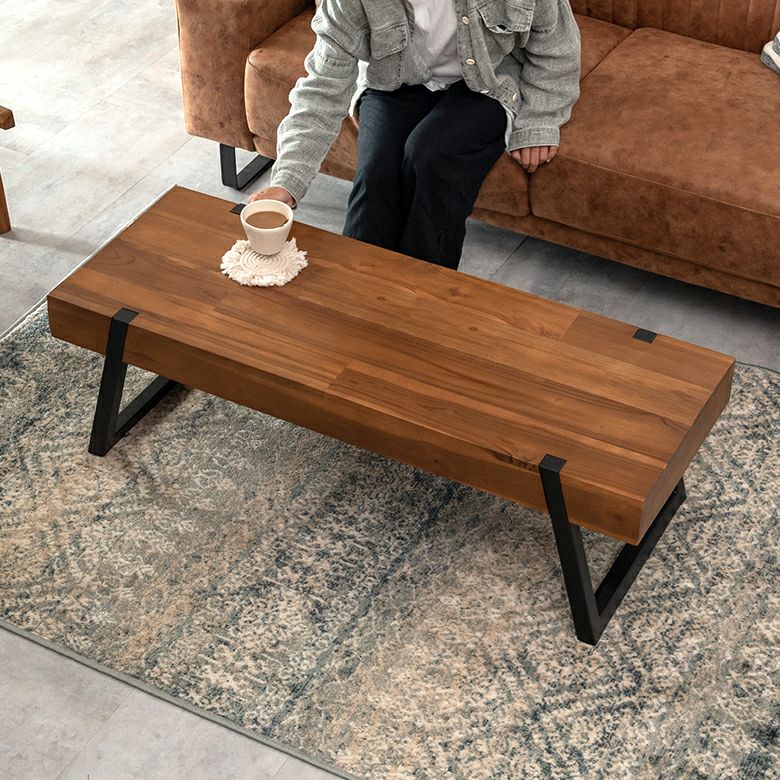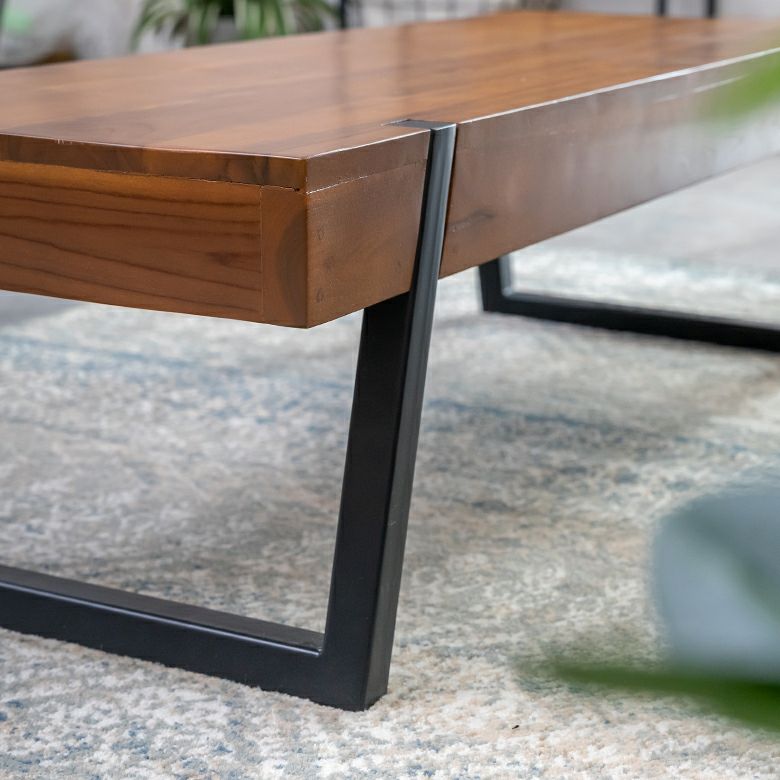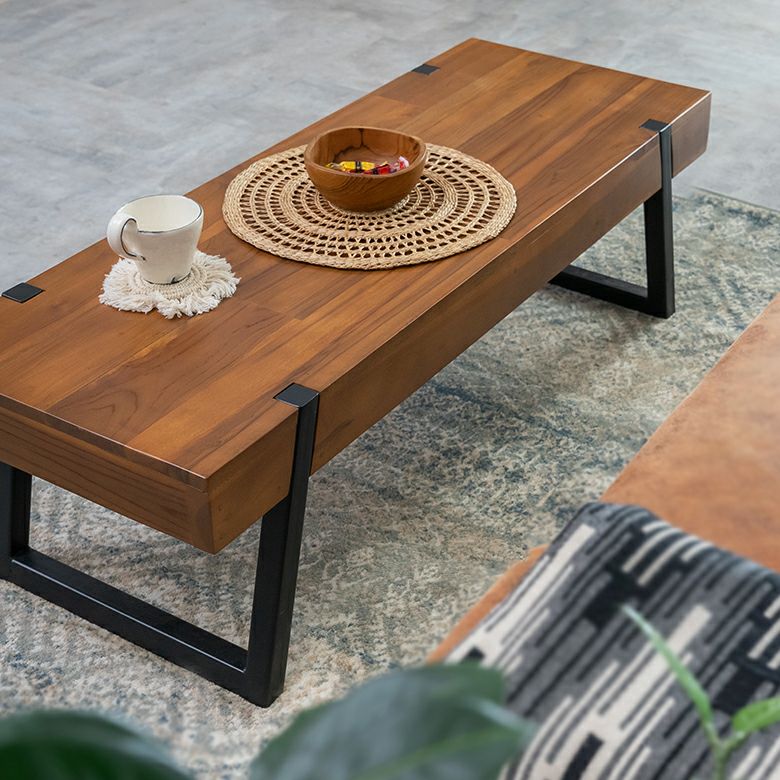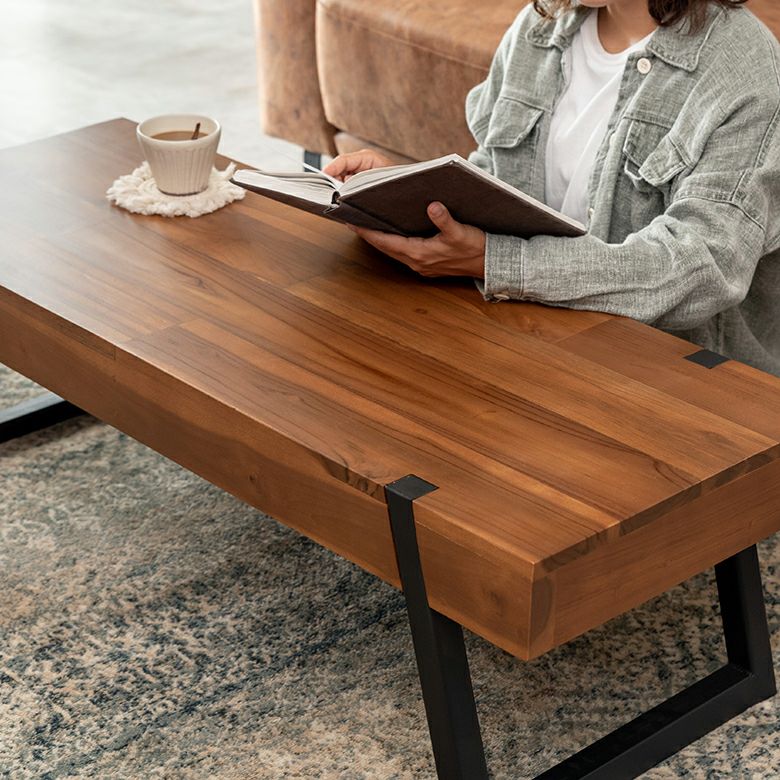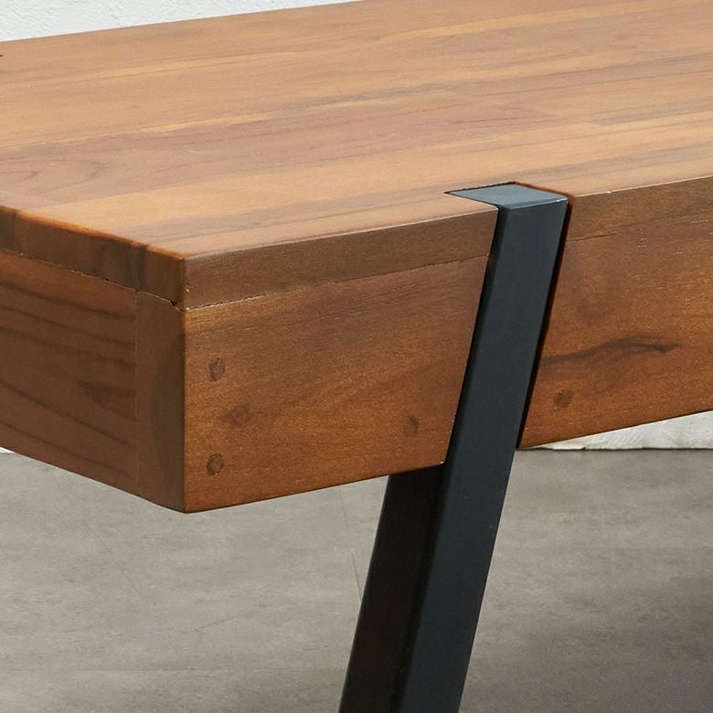 コーヒーテーブル カフェ 机 四角 スクエア 箱型 センターテーブル W 120 × D 44 × H 37 cm 木製 スチール 長方形 [91542]【 ローテーブル テーブル 天然木 アイアン チーク ソファテーブル 家具 リビング 応接室 おしゃれ シンプル ナチュラル アンティーク調 ヴィンテージ かっこいい リゾート アジアン 】