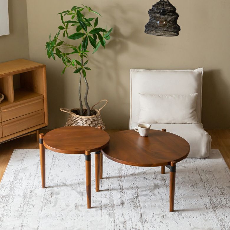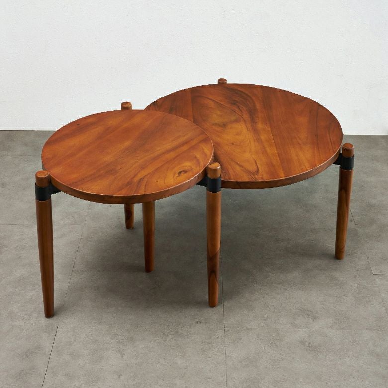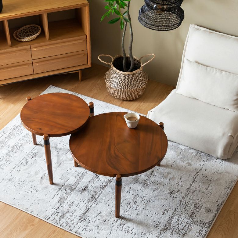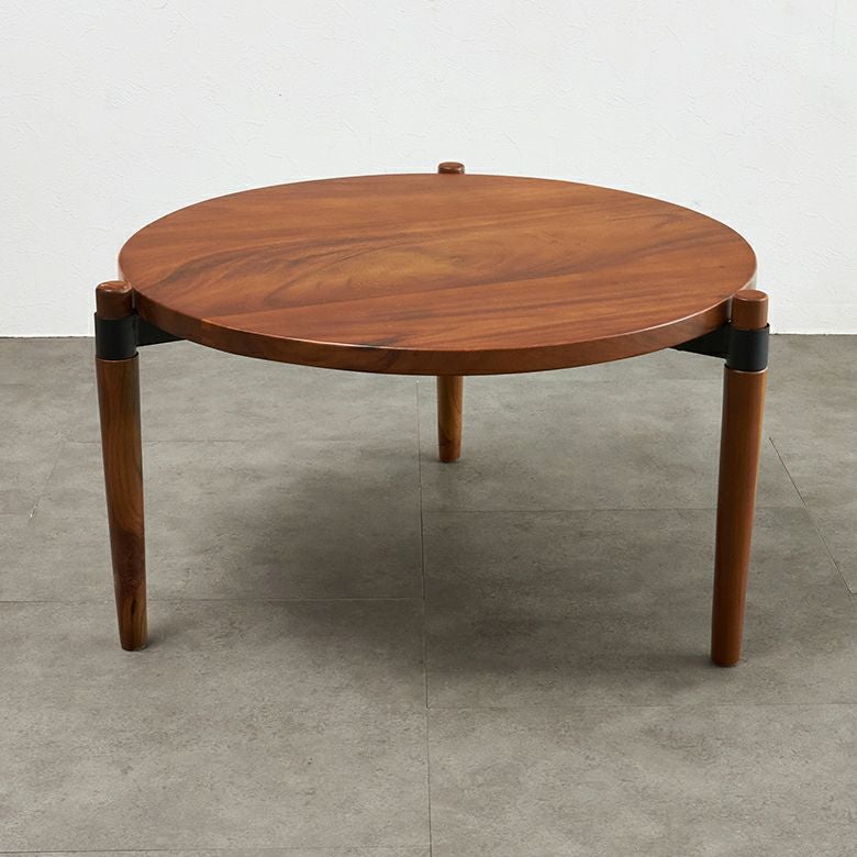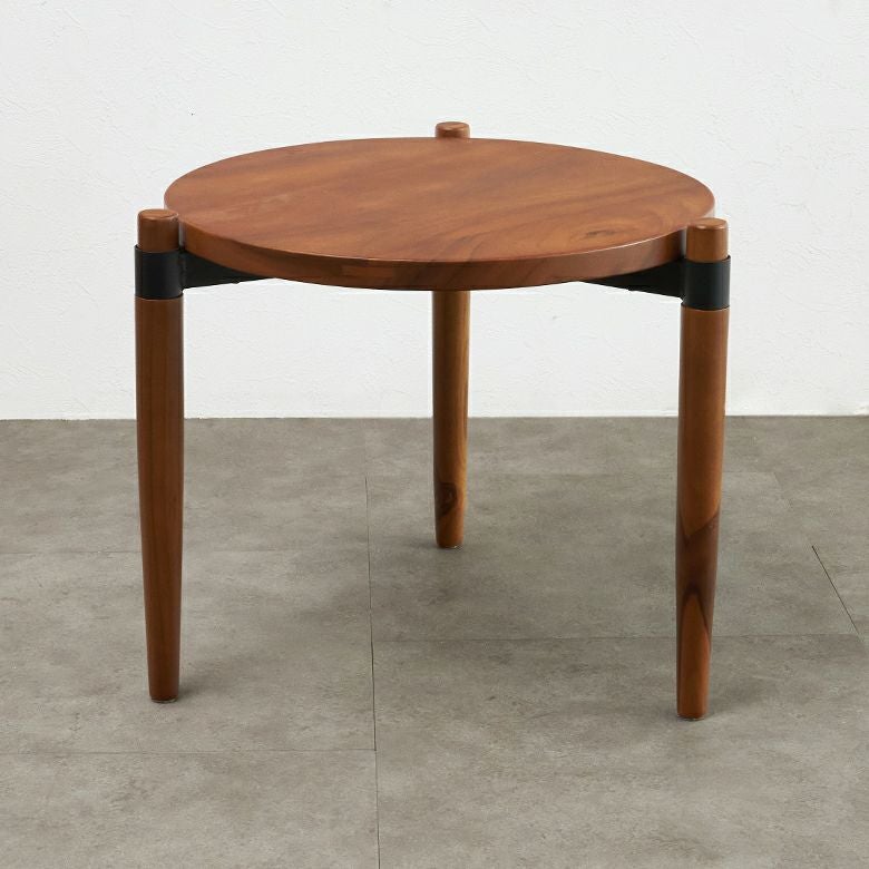 テーブル ネストテーブル 机 丸テーブル モンキーポッド サイドテーブル 直径 68.5 cm 高さ 38 cm 木製 スチール ラウンド 3本脚 [91540]【 ラウンドネストテーブル 円形 丸 円卓 天然木 ソファテーブル ナイトテーブル 家具 リビング 寝室 ベッドサイド 応接室 おしゃれ シンプル ナチュラル アンティーク調 リゾート アジアン 】