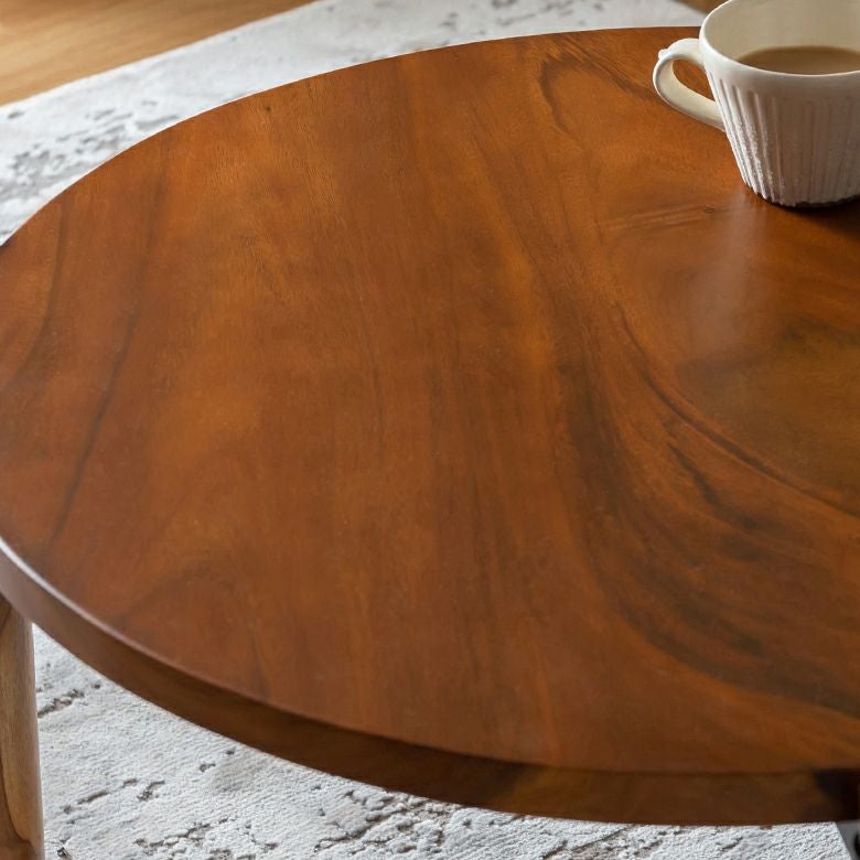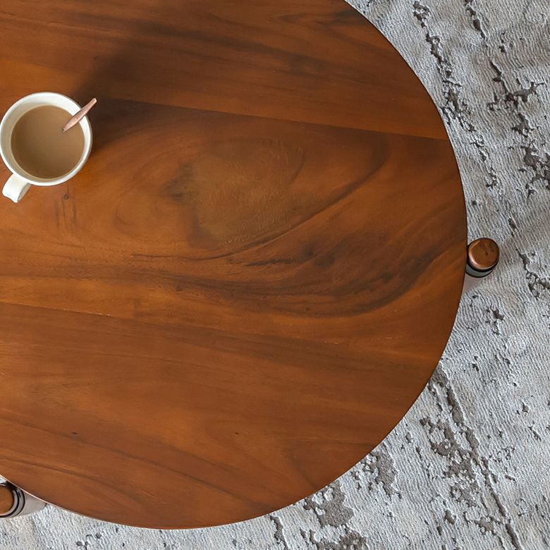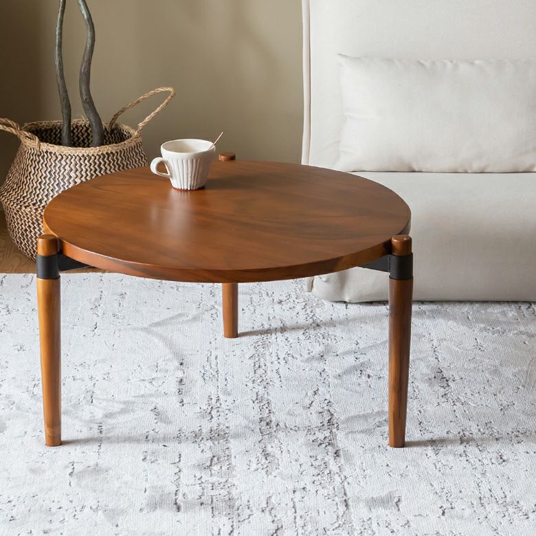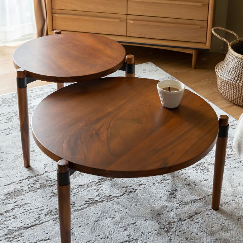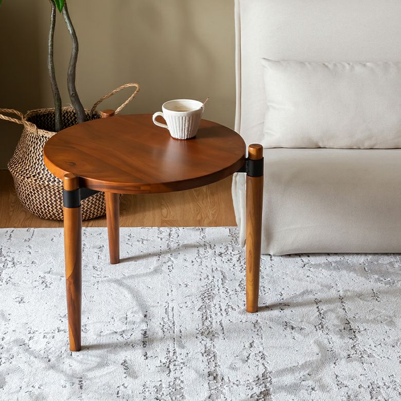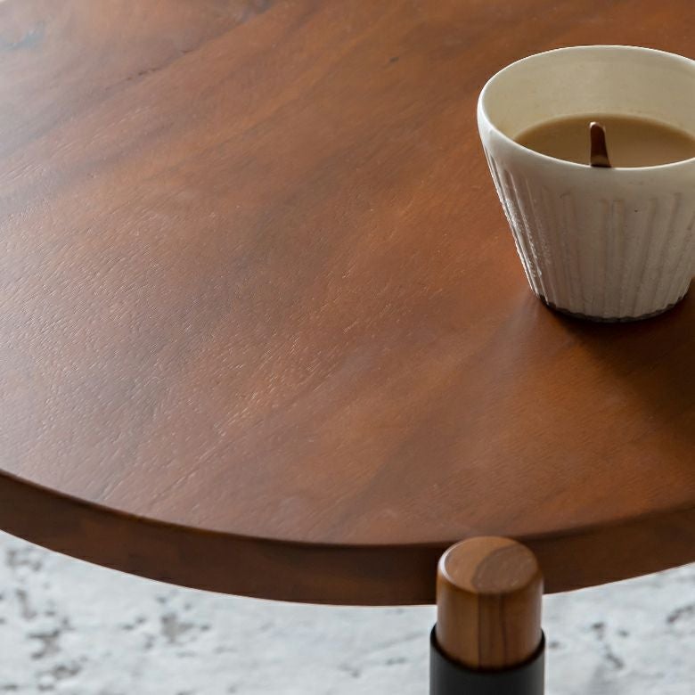 テーブル ネストテーブル 机 丸テーブル モンキーポッド サイドテーブル 直径 68.5 cm 高さ 38 cm 木製 スチール ラウンド 3本脚 [91540]【 ラウンドネストテーブル 円形 丸 円卓 天然木 ソファテーブル ナイトテーブル 家具 リビング 寝室 ベッドサイド 応接室 おしゃれ シンプル ナチュラル アンティーク調 リゾート アジアン 】