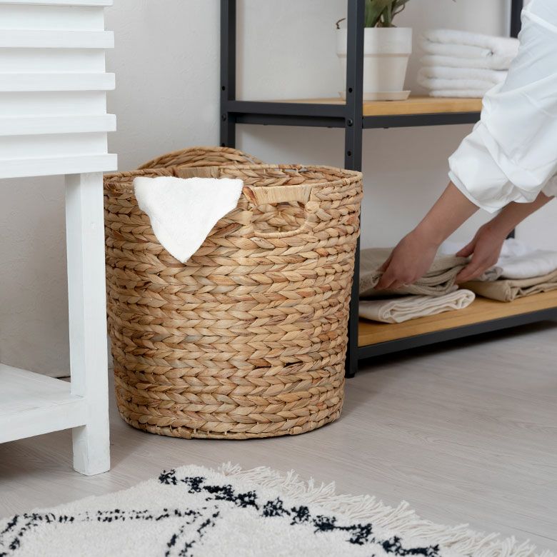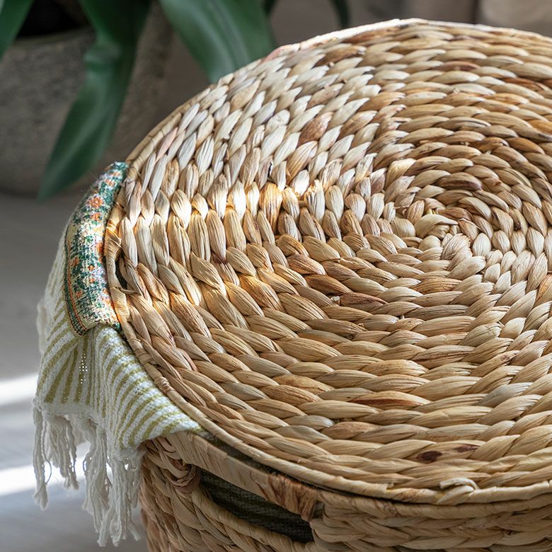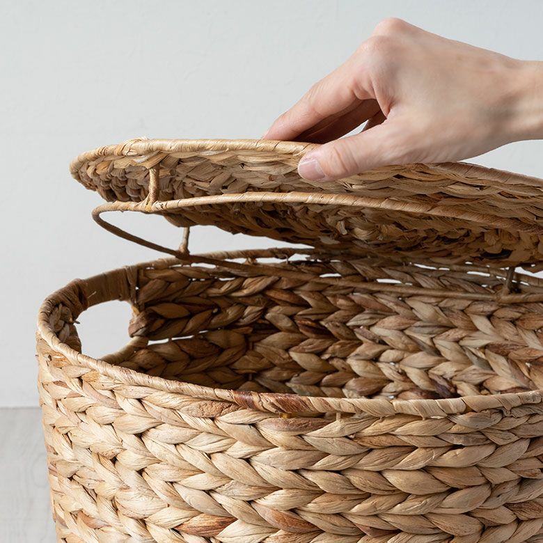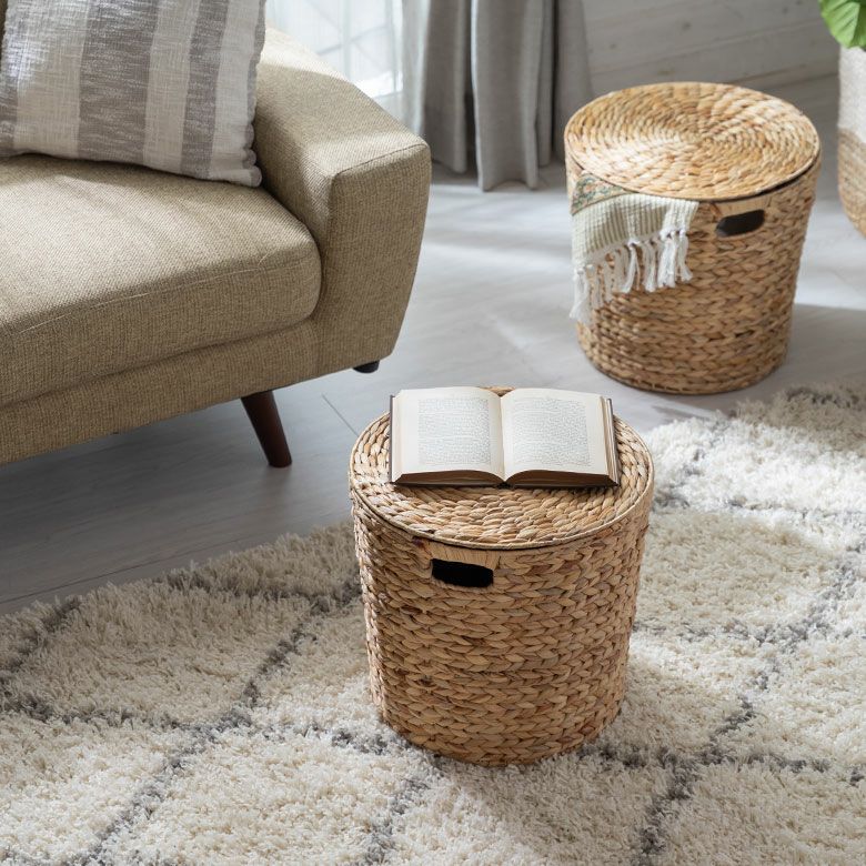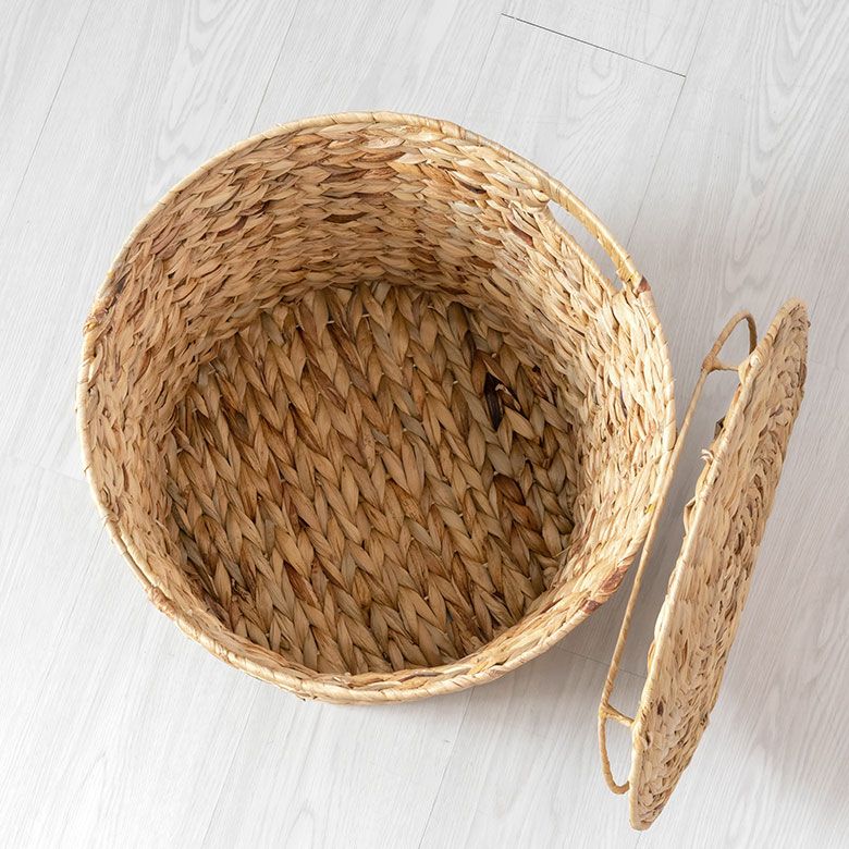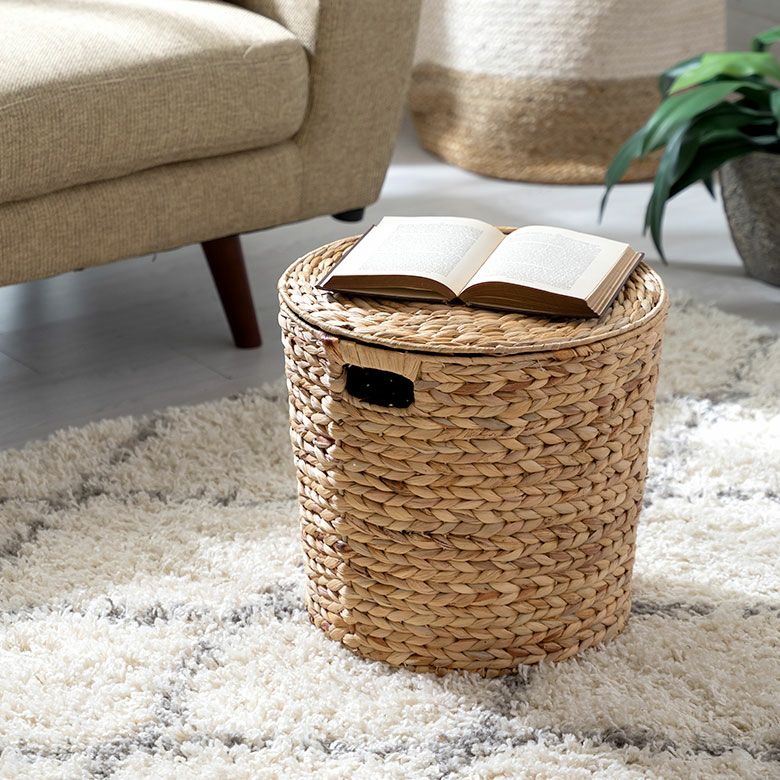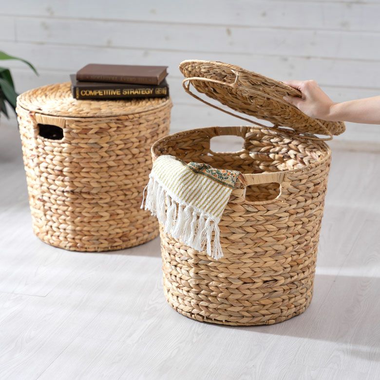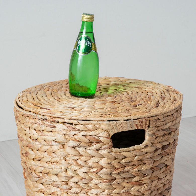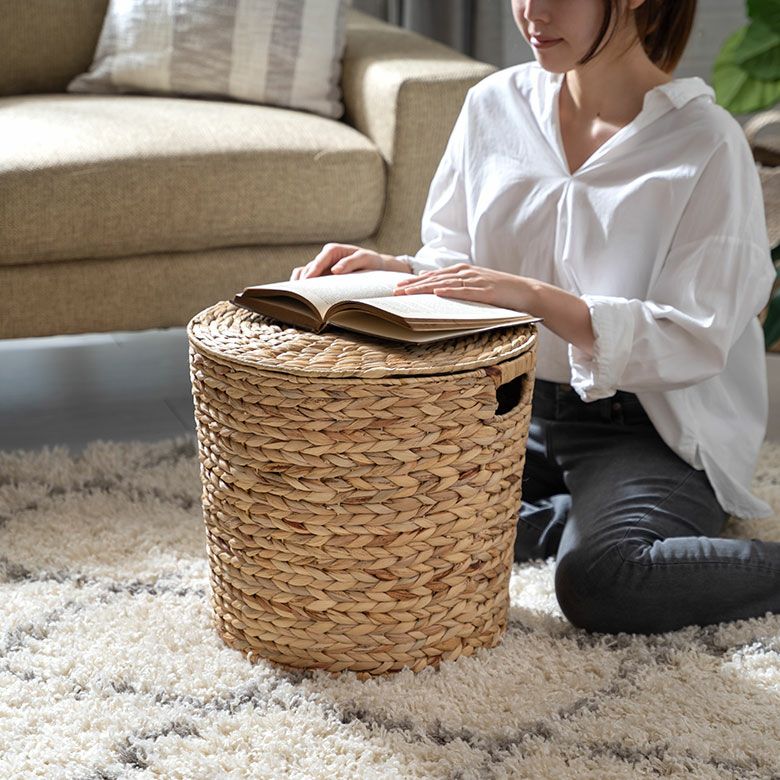 コンソールテーブル ワイヤー バスケット テーブル インテリア サイドテーブル ラタン 風 天然素材 籠 カゴ 収納ボックス 収納バスケット おもちゃ入れ 蓋 付き 新生活 バスケット ふた付き バスケットテーブル 蓋付き 大きめ 円柱 筒型 ウォーターヒヤシンス 約 W 39 × D 39 × H 35 cm [51323]【 カゴバスケット 収納 持ち手付き ハンドル付き ランドリーバスケット ゴミ箱 ごみ箱 おしゃれ 北欧 シンプル ナチュラル 西海岸 】