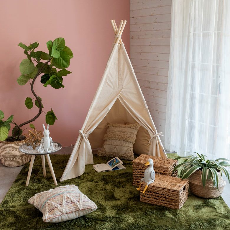 紐で結んで留めるカーテン付きなので、お子さまの秘密基地としても楽しめます。