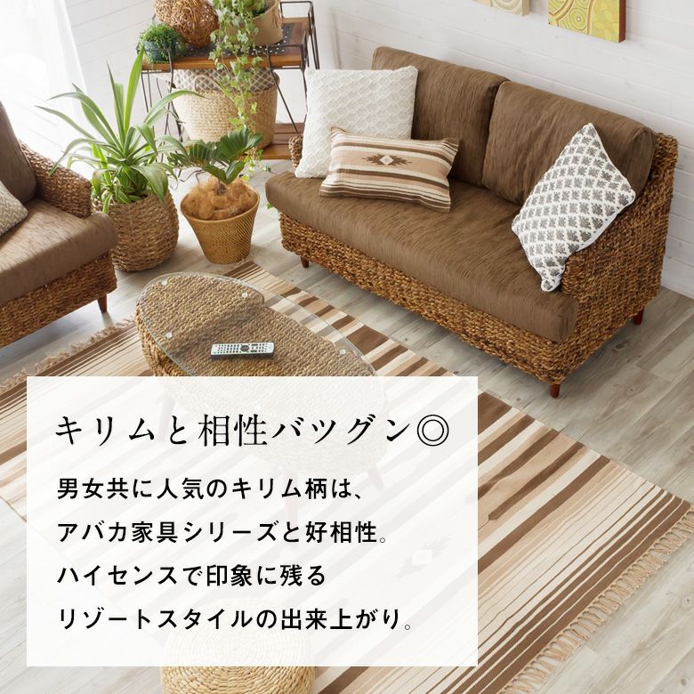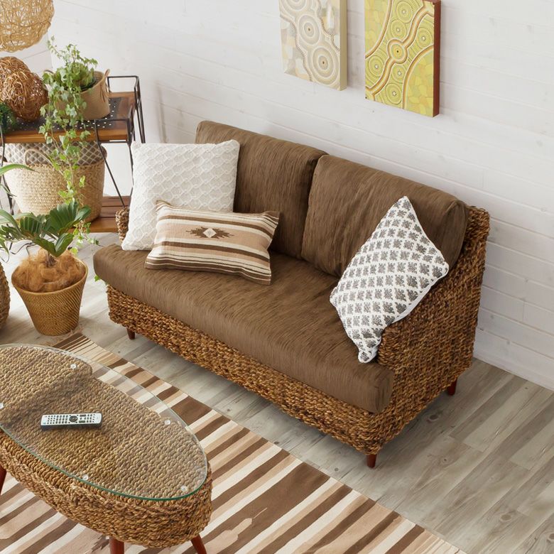 天然素材「アバカ」を使った、インドネシア製の2人掛けソファ。