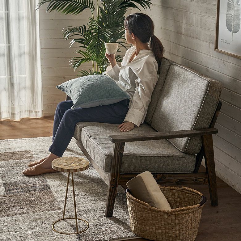 上品で素朴な雰囲気が魅力的な2人掛けのソファ。